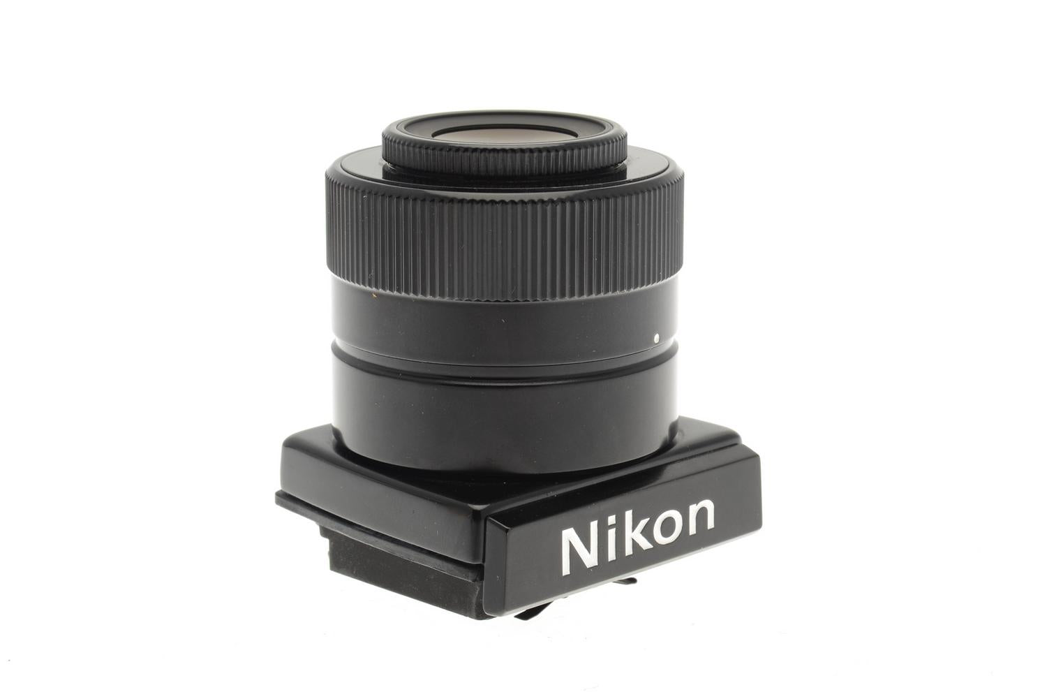 Focusing finder for Nikon F2 cameras made by Nikon. Provides 6x magnification. Suitable for macro photography. Has a built-in diopter adjustment from -5 to +3. Metal body available in black.