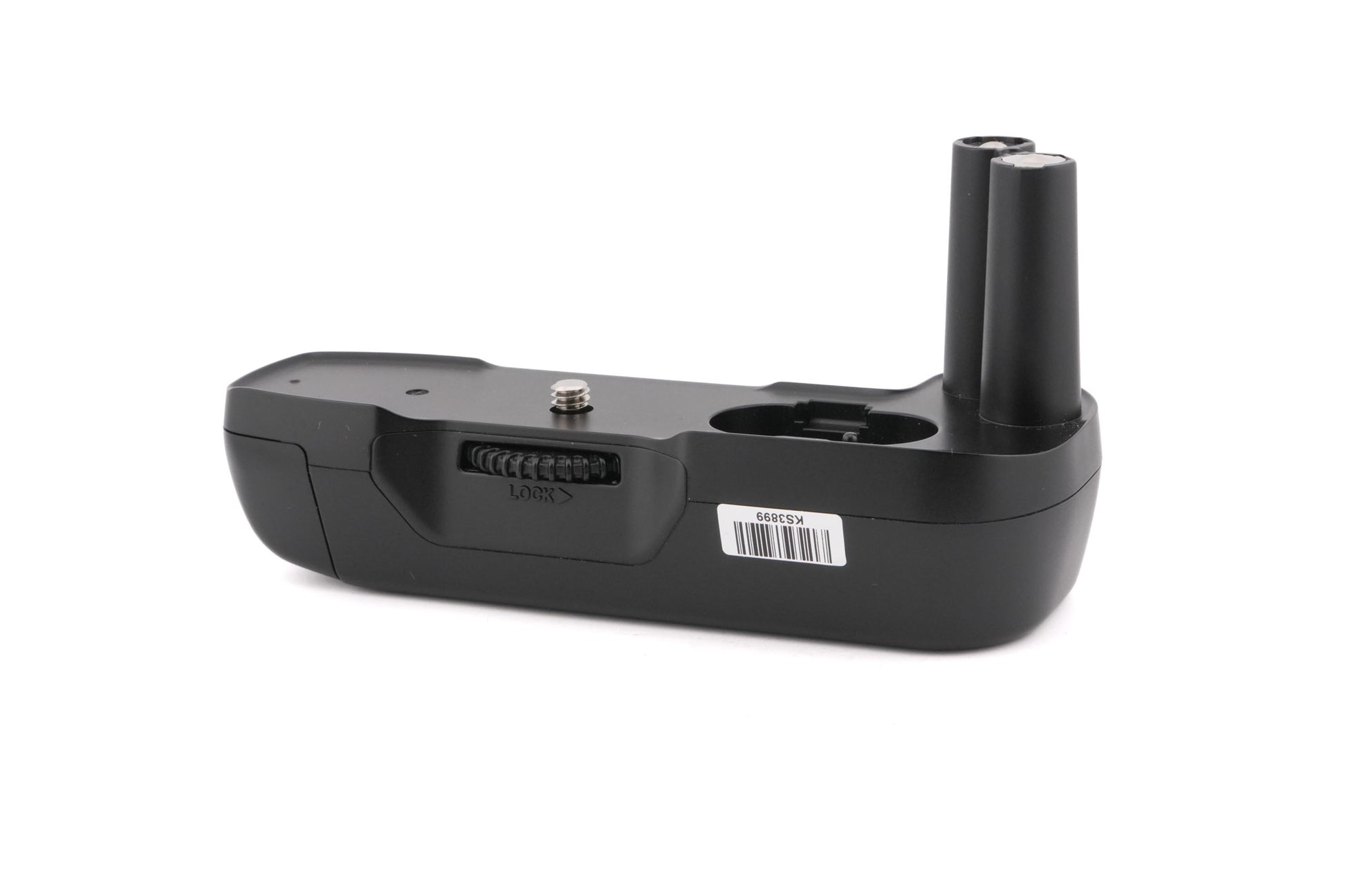 Grip accessory for Nikon F80/N80 cameras. Allows the use of four AA size batteries. Does not have a vertical shutter release button. Black plastic body.