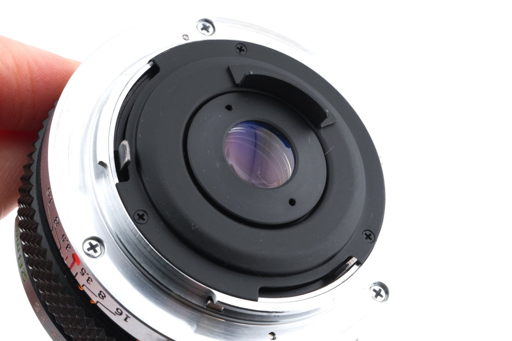Manual focus wide-angle lens made for OM mount SLRs by Olympus. One of the first lenses introduced alongside the OM-1 in 1972. Metal body available in black & silver.