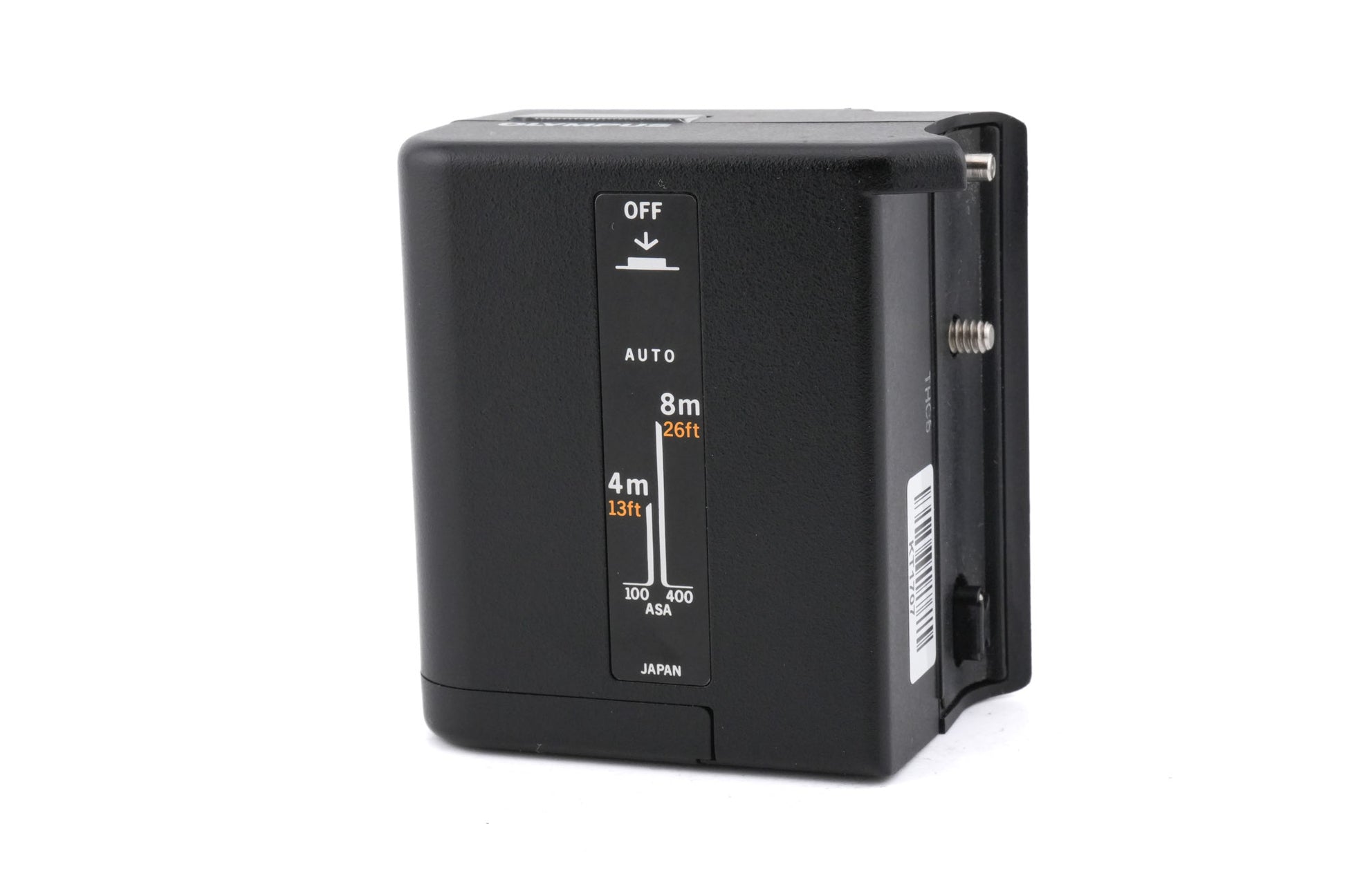 Electronic flash made for the Olympus XA series of cameras made by Olympus. A more powerful version of the more common A11 flash. It also uses two AA batteries instead of one. Plastic body available in black.