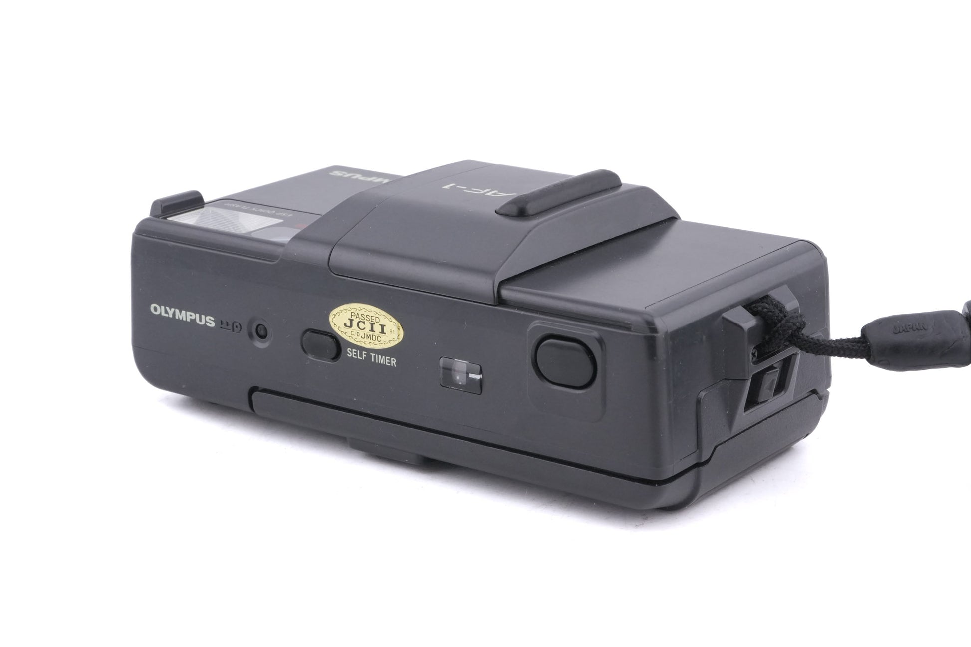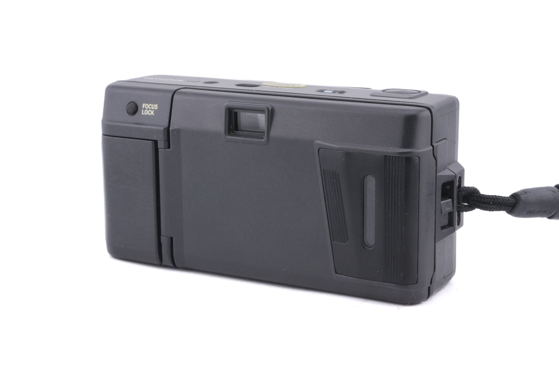 Autofocus 35mm point-and-shoot camera released by Olympus in 1986. It was the world's first weatherproof fully automatic 35mm compact camera. It has a built-in flash and a self-timer. Plastic body available in dark gray.