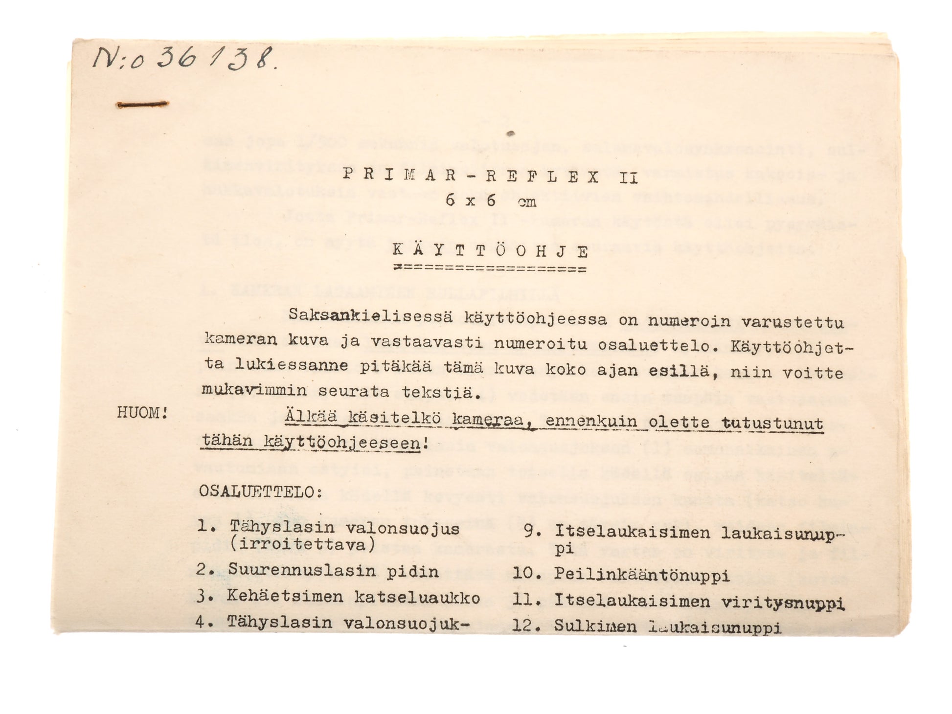 Meyer-Optik Görlitz Primar-Reflex II Instructions - Accessory
