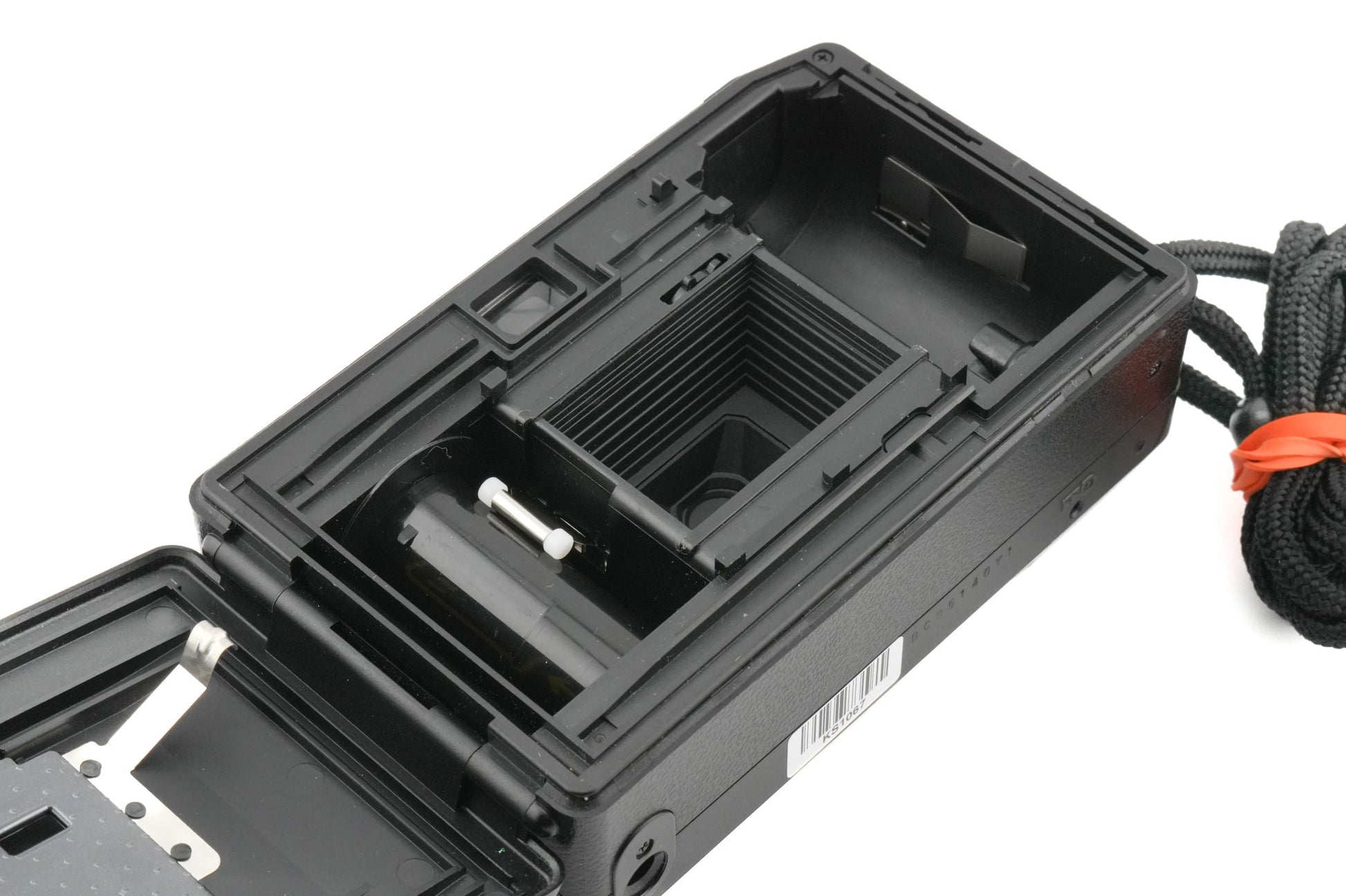 Autofocus 35mm point-and-shoot camera released by Panasonic. It has a manual flash on/off switch and a sliding lens cover. Plastic body available in black.