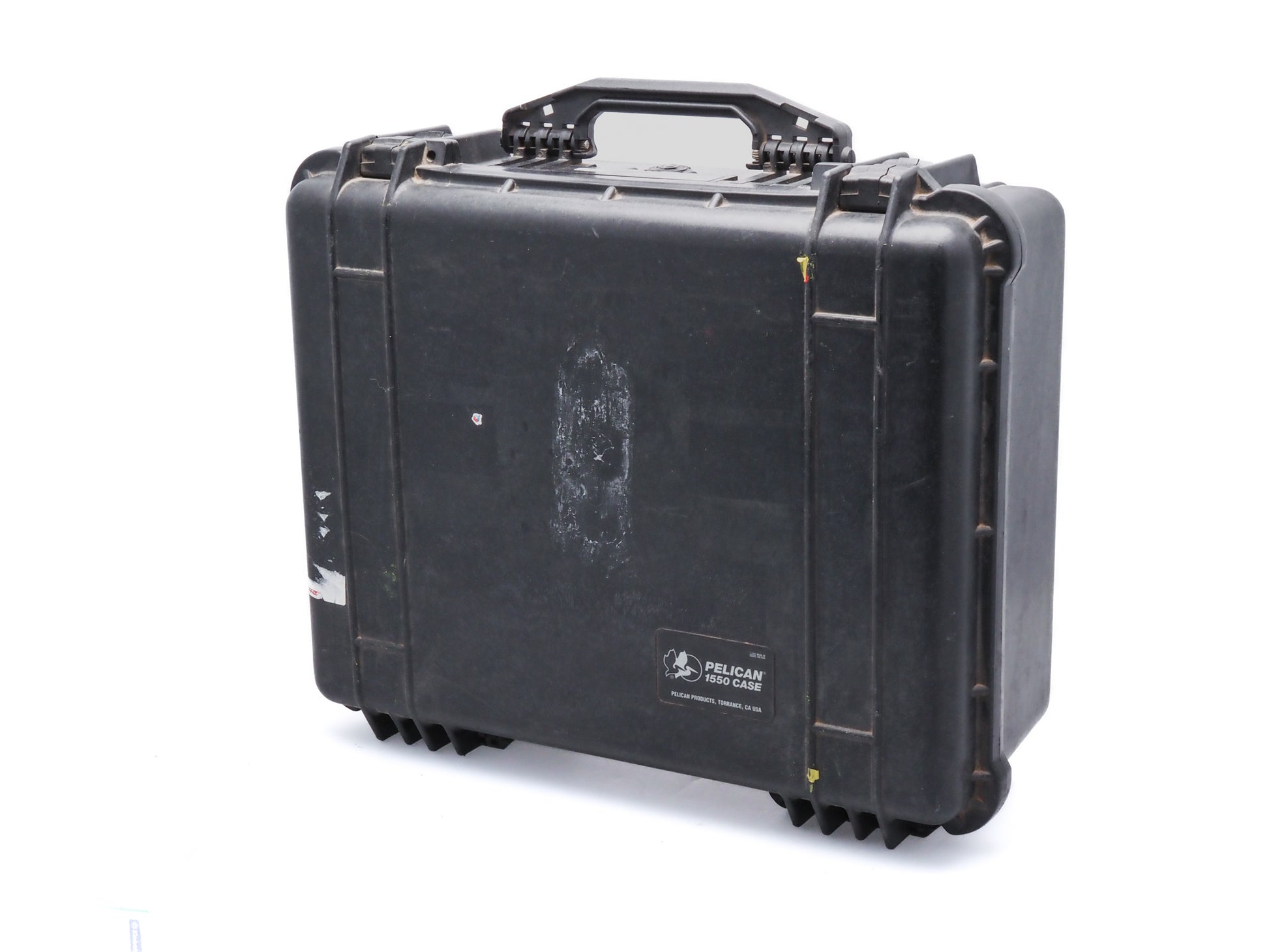 Hard case made by Pelican. Often comes with foam that can be cut out to fit a specific camera or kit.