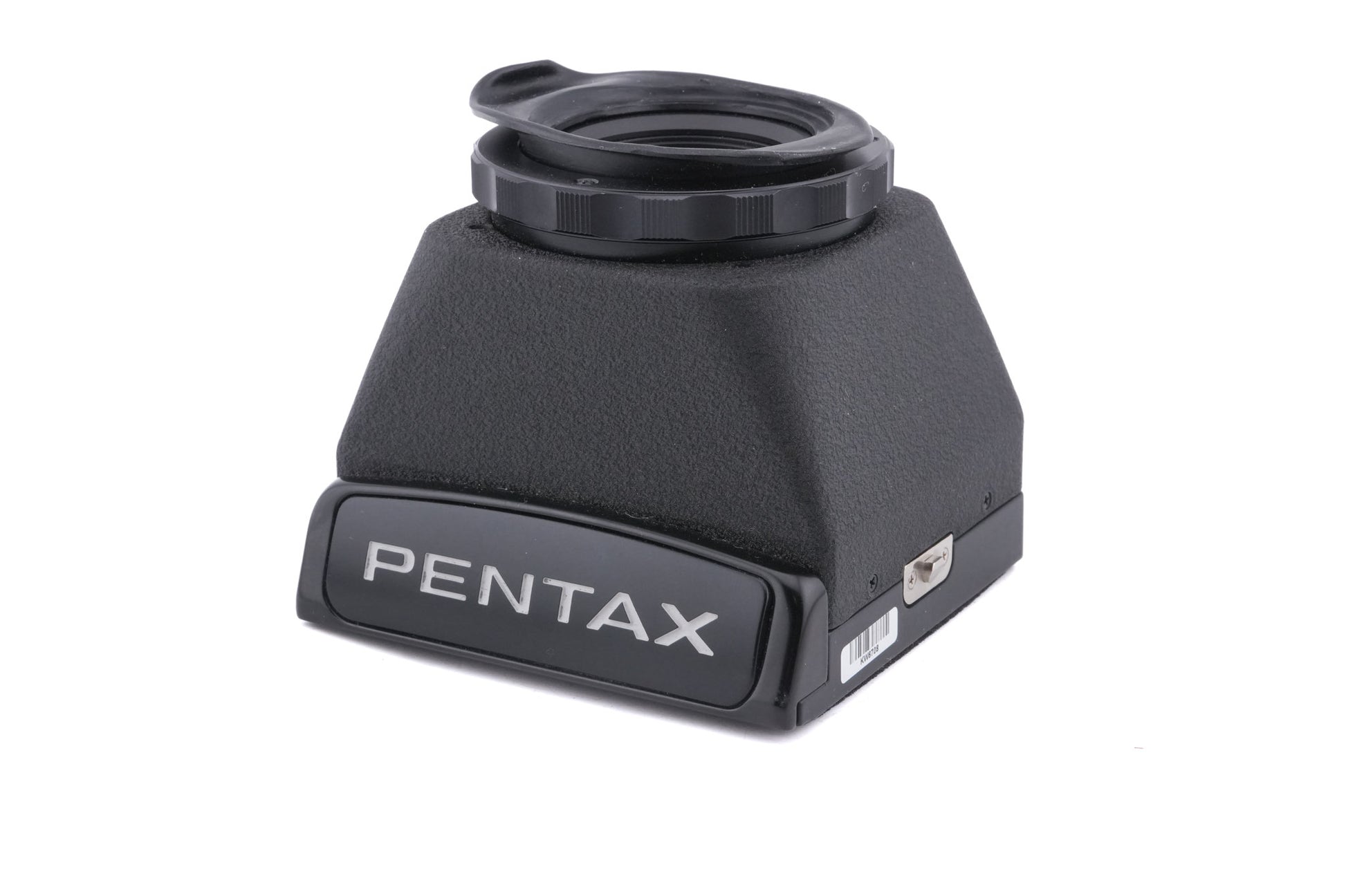 Waist-level chimney finder made for 6x7 mount 120 SLRs by Pentax. All models of the chimney finder will fit on all models of the 6x7. Metal body available in black.