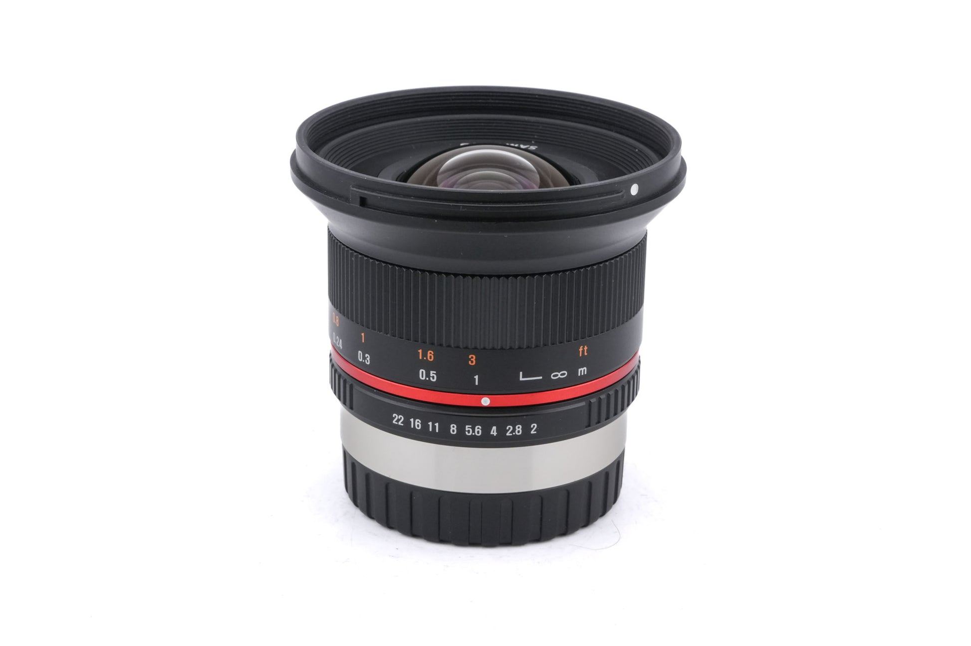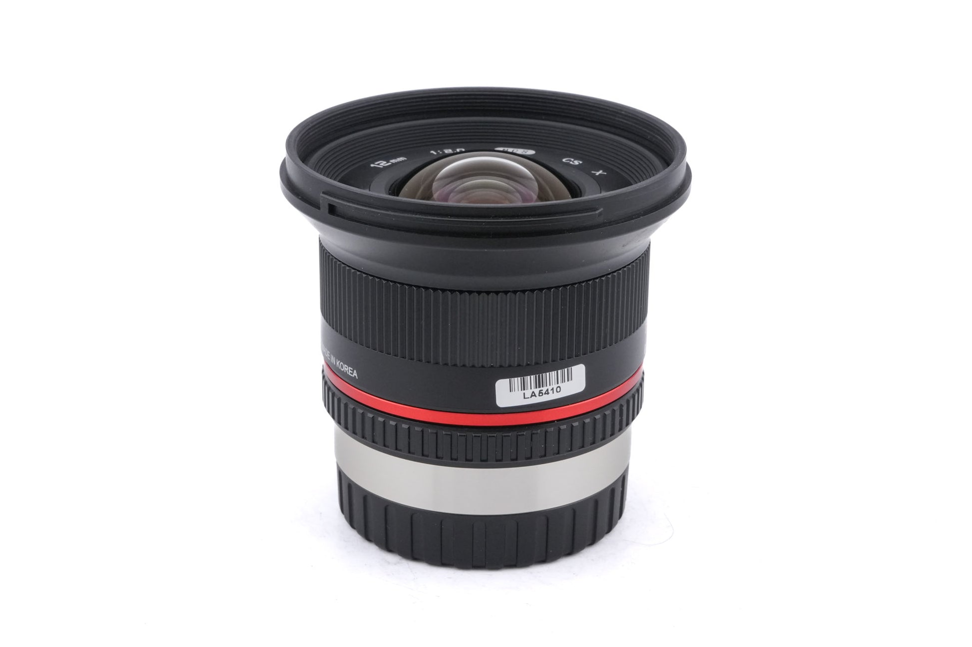 Manual focus wide-angle lens made for Fujifilm X-mount mirrorless cameras by Samyang. Plastic and metal body available in black and silver.