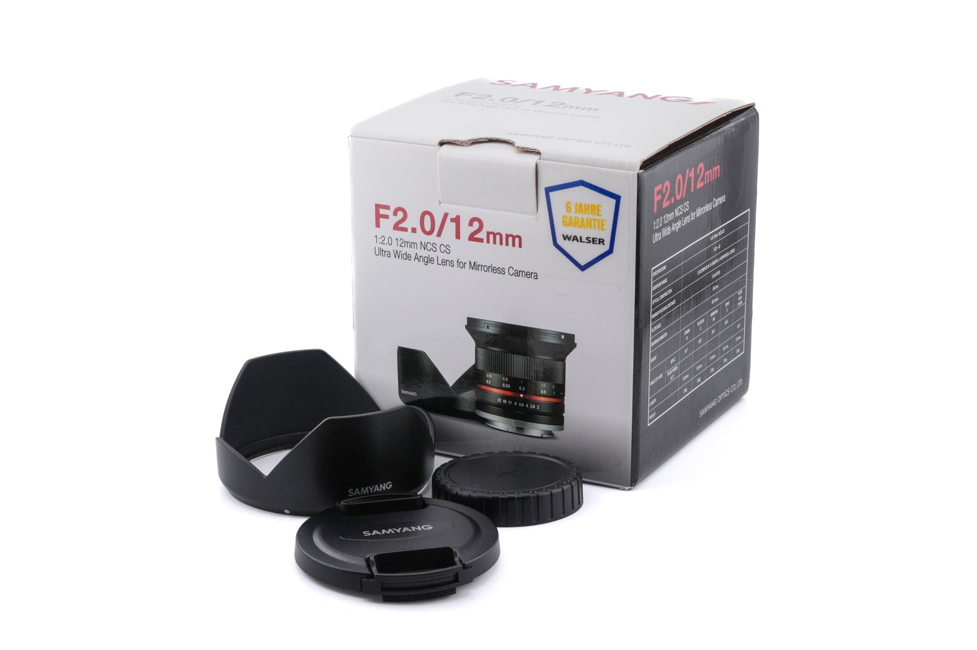 - Samyang 12mm f2 NCS CS (12 elements, 10 groups)