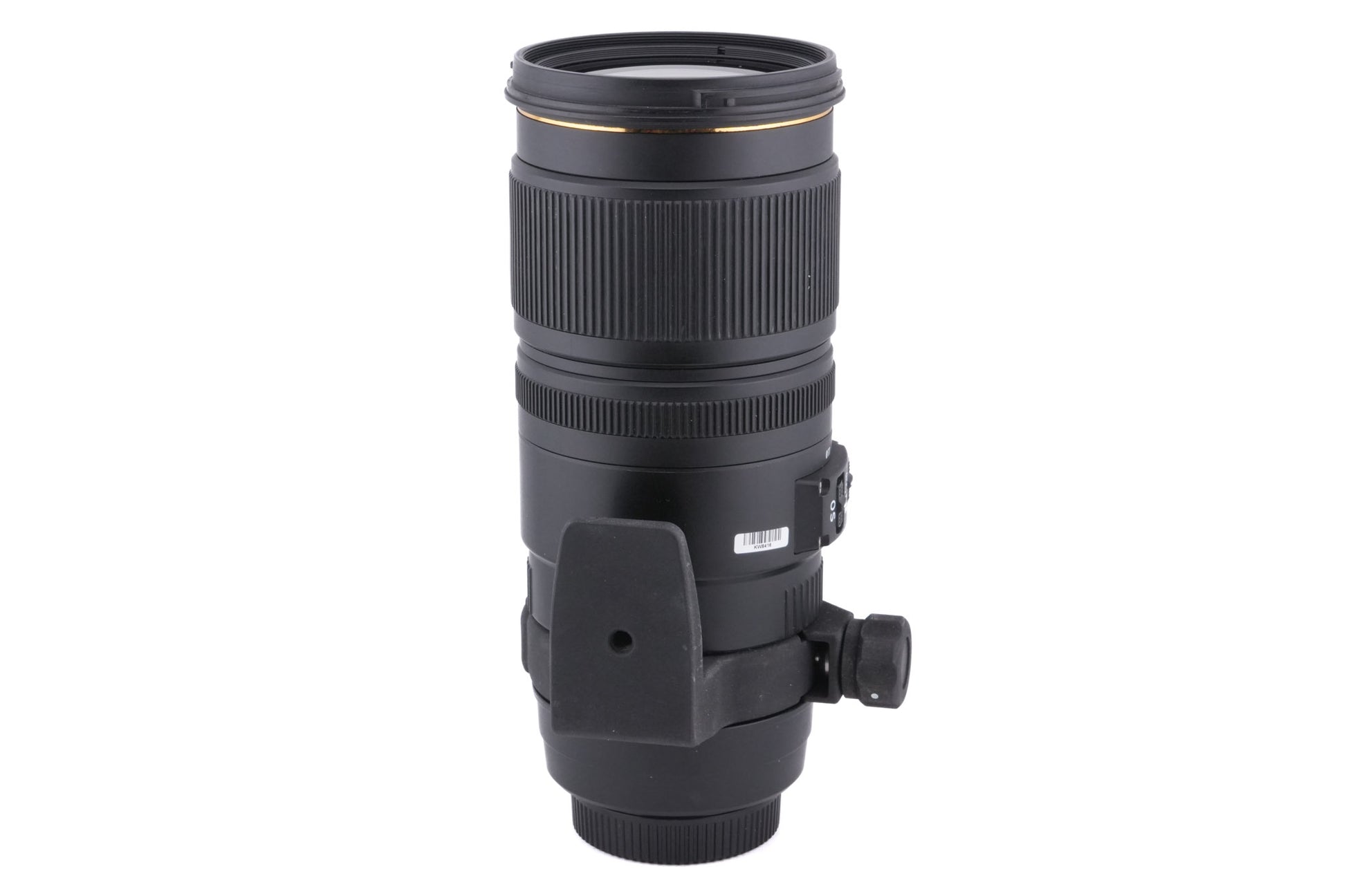 Autofocus telephoto zoom lens made for Nikon F mount by Sigma. This lens is not compatible with Nikon film cameras other than the F6. It uses apochromatic (APO) glass elements to improve image quality and has Sigma's Optical Stabilizer (OS) and High-Speed Motor (HSM) to improve focusing speed and lower camera shake. Metal/plastic body available in black.
