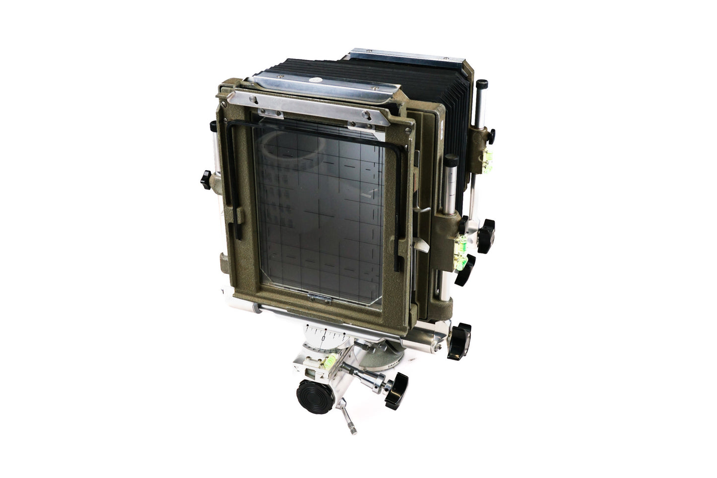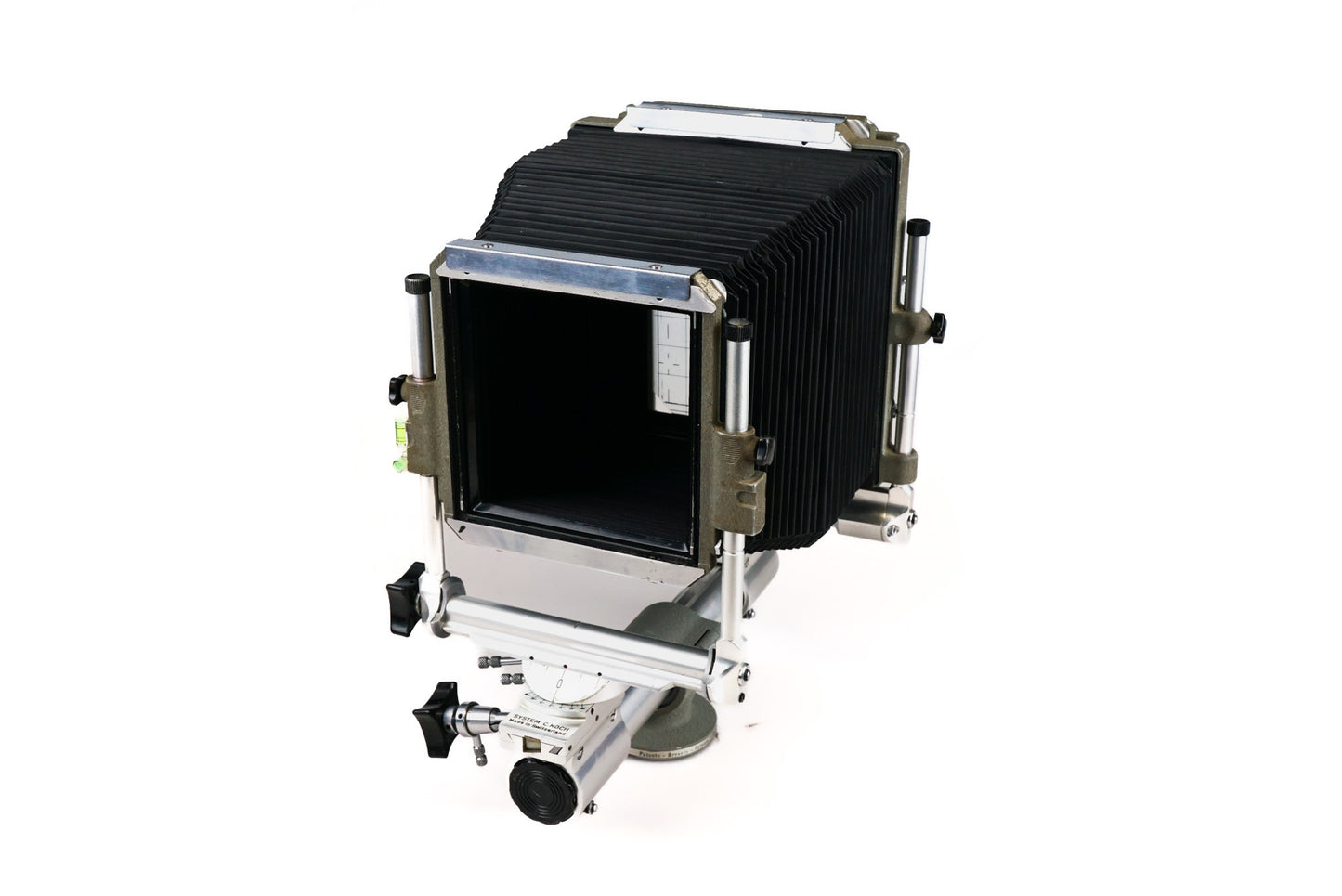 Manual focus 5x7" large format camera made by Sinar. Metal construction available in gray.