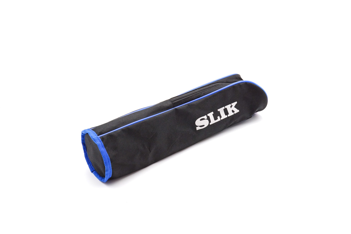 Camera tripod for SLR bodies with 1/4" threads made by Slik. Metal construction available in gray.
