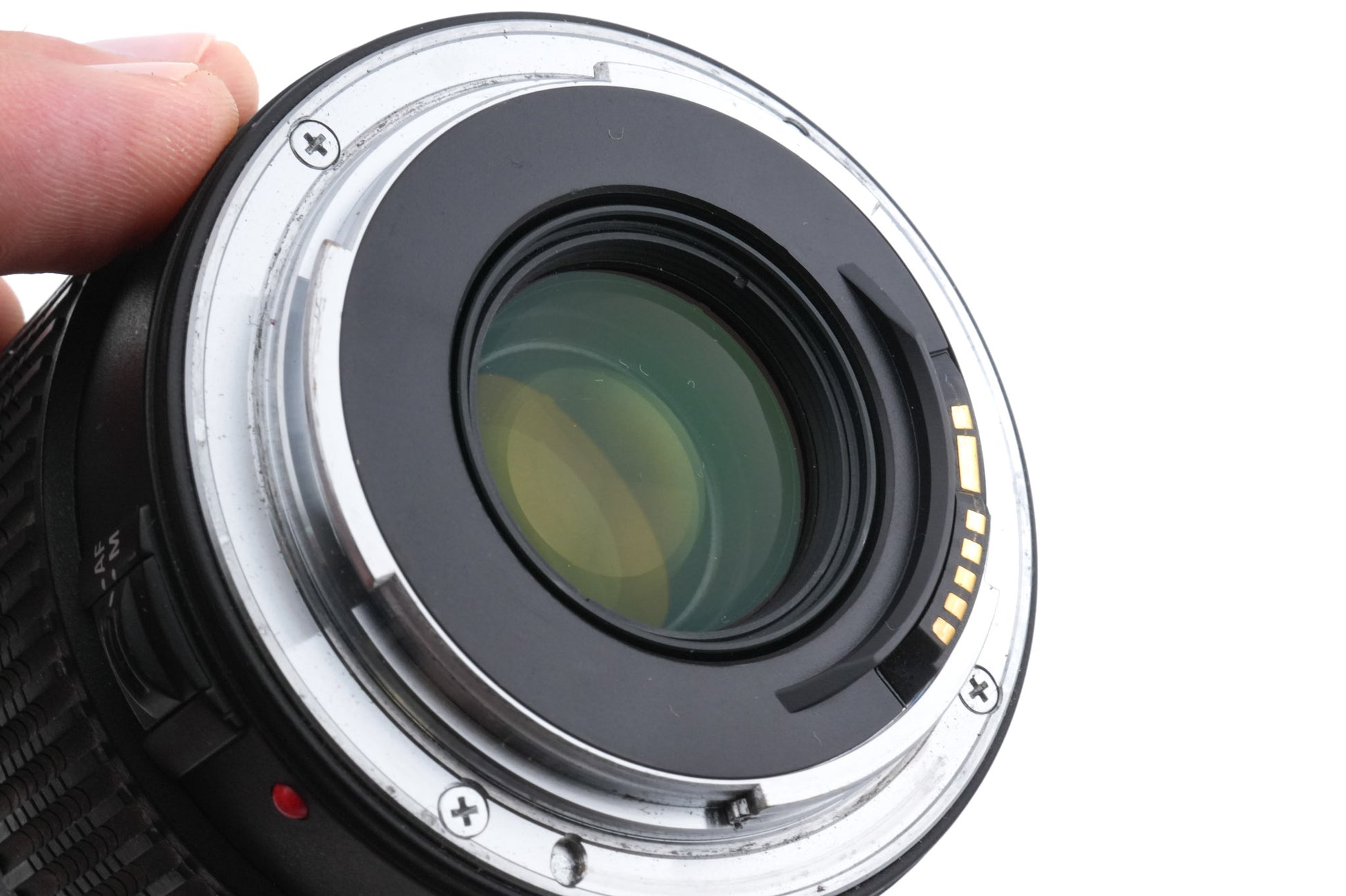 Autofocus wide angle zoom lens made for EF-mount (D)SLRs by Tamron. It uses aspherical elements to improve image quality, has Tamron's Low-Dispersion (LD) elements to reduce chromatic aberration, and has Tamron's internal focus (IF) system so it doesn't extend when focused. It's also digitally-integrated (DI) so it will work with digital cameras as well as film cameras. Plastic & metal body available in black.