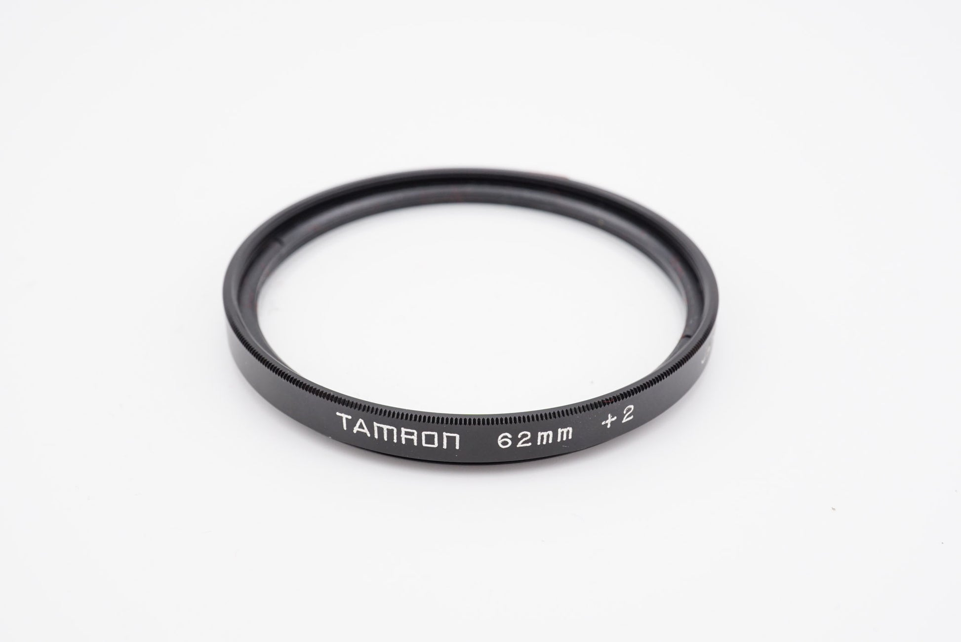 A 62mm close-up +2 filter made by Tamron for use on SLR or DSLR cameras.