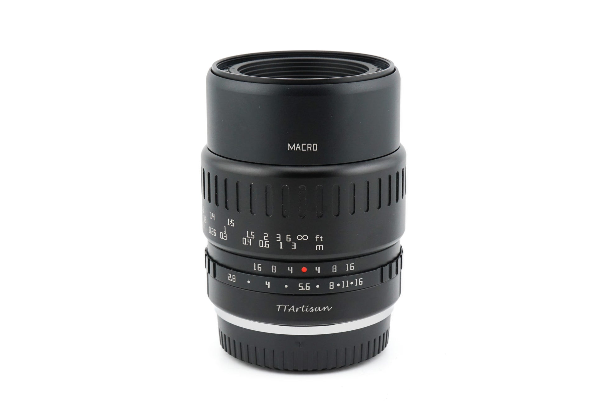 Manual focus macro lens made for Fujifilm X-mount mirrorless SLR cameras by TTArtisan. Metal body available in black.