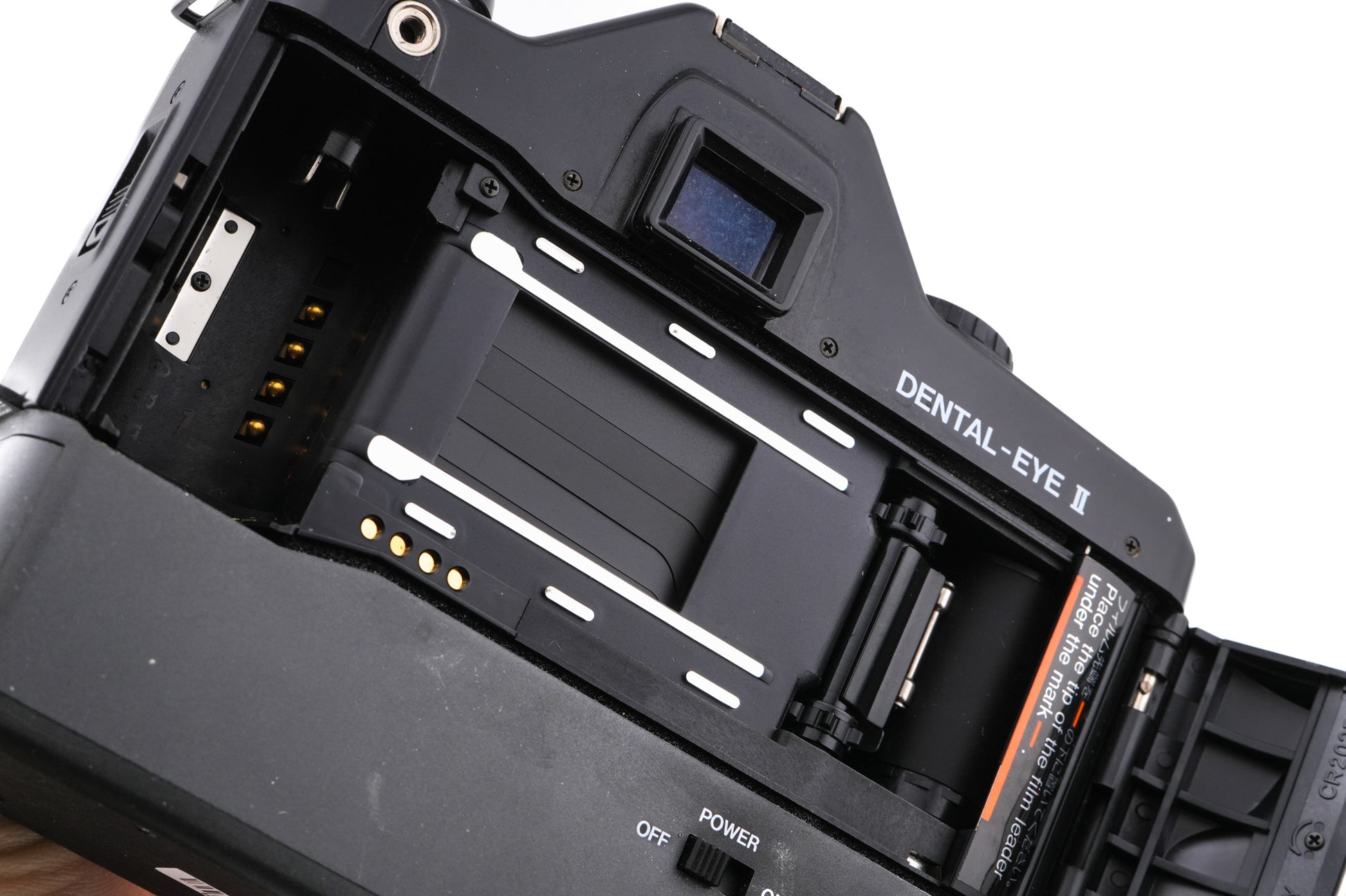 Manual focus 35mm SLR camera for dental work made by Yashica in 1993. Allows for 1:15 macro photography. Plastic construction available black.
