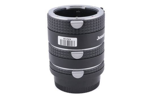 Macro extension tube set made for Nikon F-mount SLR cameras. It has connections for AI lenses and cameras. Various manufacturers, designs, sizes, etc.