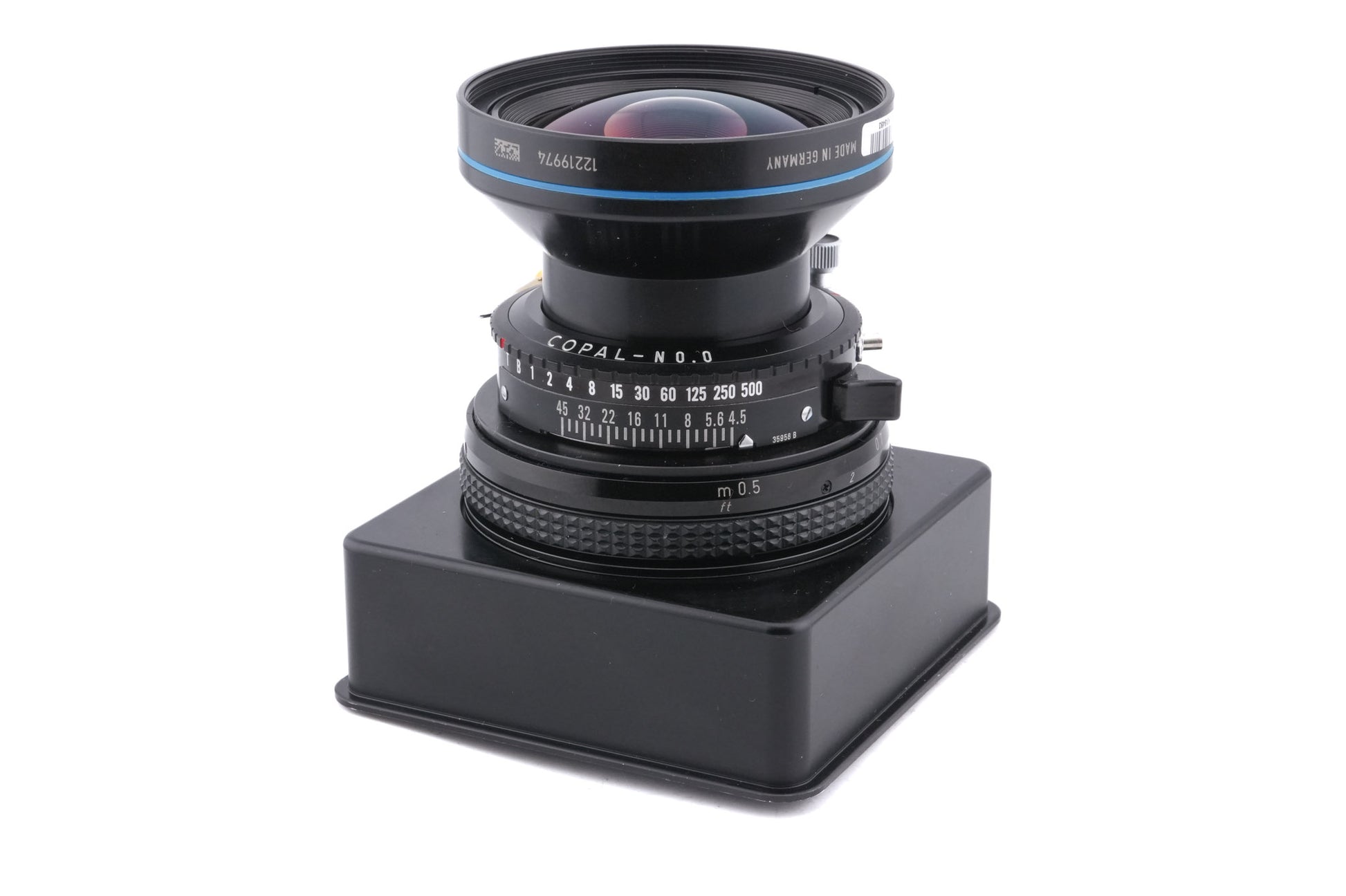 Manual focus wide-angle lens made for 12 series modular cameras by Alpa/Rodenstock. It's designed to be used with medium format digital backs and gives the approximate field of view to a 28mm lens on full frame/35mm. It has a built-in focusing helicoid. Metal body available in black.