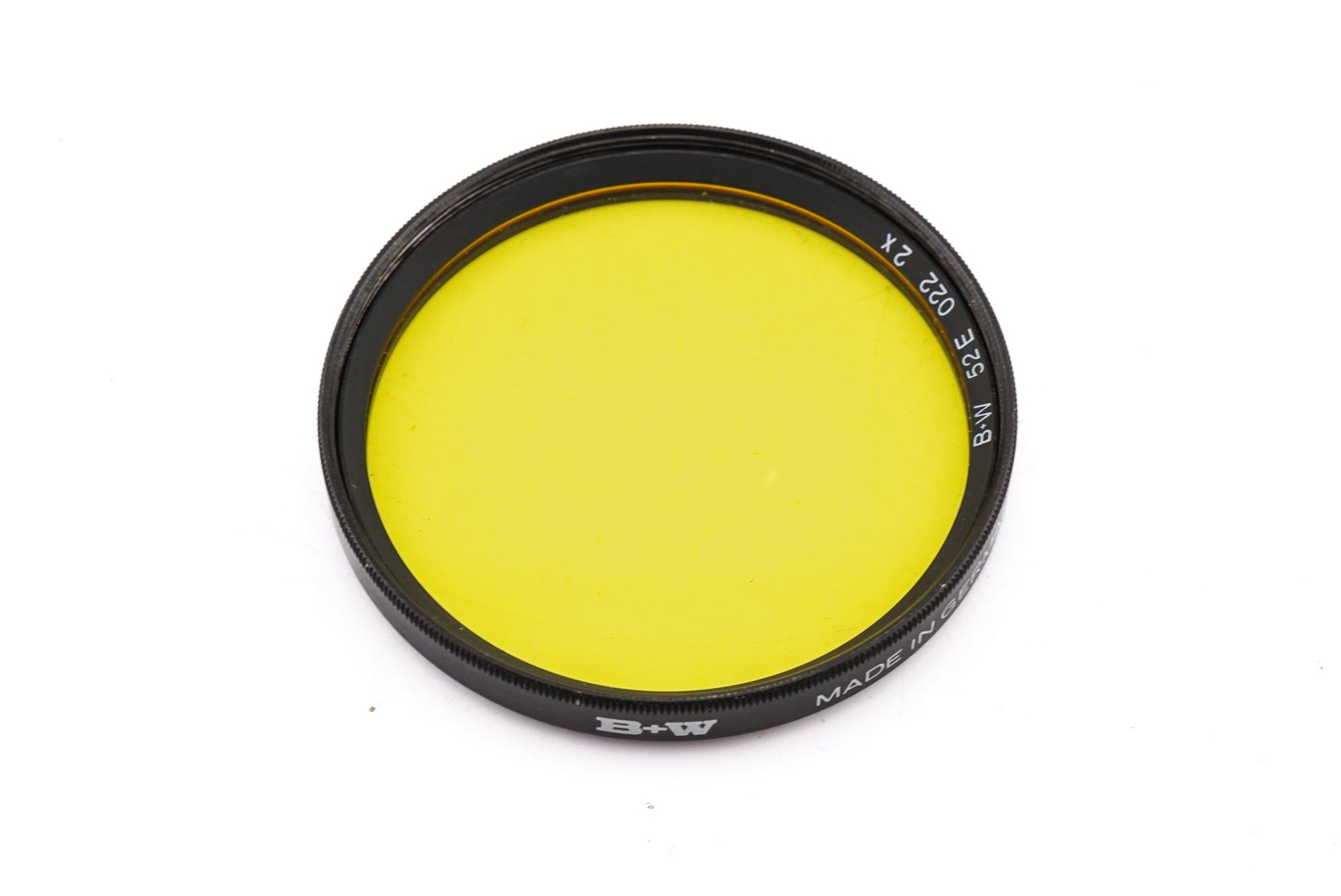 Yellow filter made by B+W for lenses with 52mm filter threads. Metal body available in black.