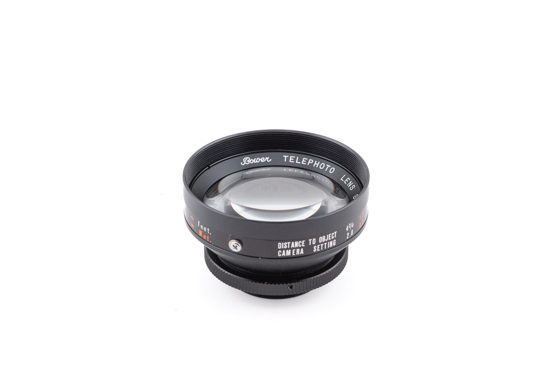 Telephoto lens attachment made by Bower. Has a ~34mm thread mount. Metal body available in black.