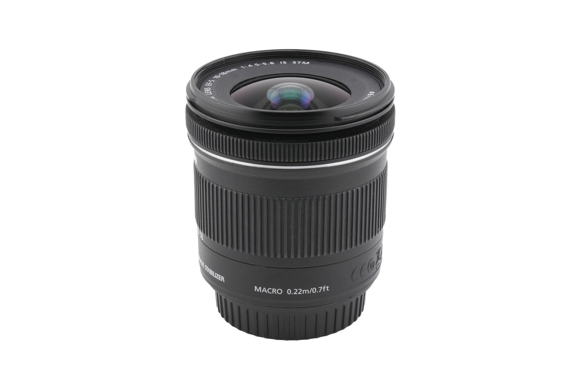 Autofocus wide-angle zoom lens made for EF-S-mount digital SLRs by Canon. Has 4 stops of image stabilization (IS) and a stepping motor (STM) for fast, quiet autofocus. Plastic body available in black.