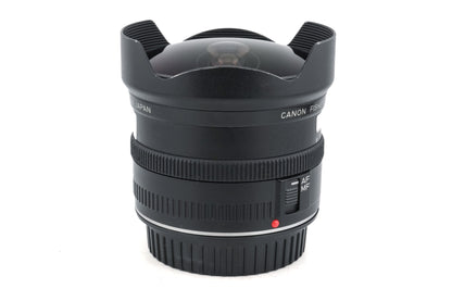 Autofocus fisheye/wide-angle lens for EF-mount by Canon. It gives a 180º field of view and has a gelatin filter holder on the rear bayonet mount. Plastic body available in black.