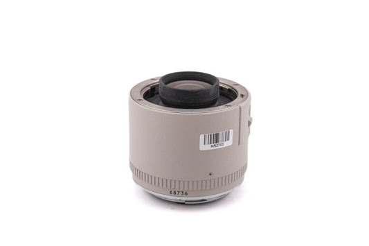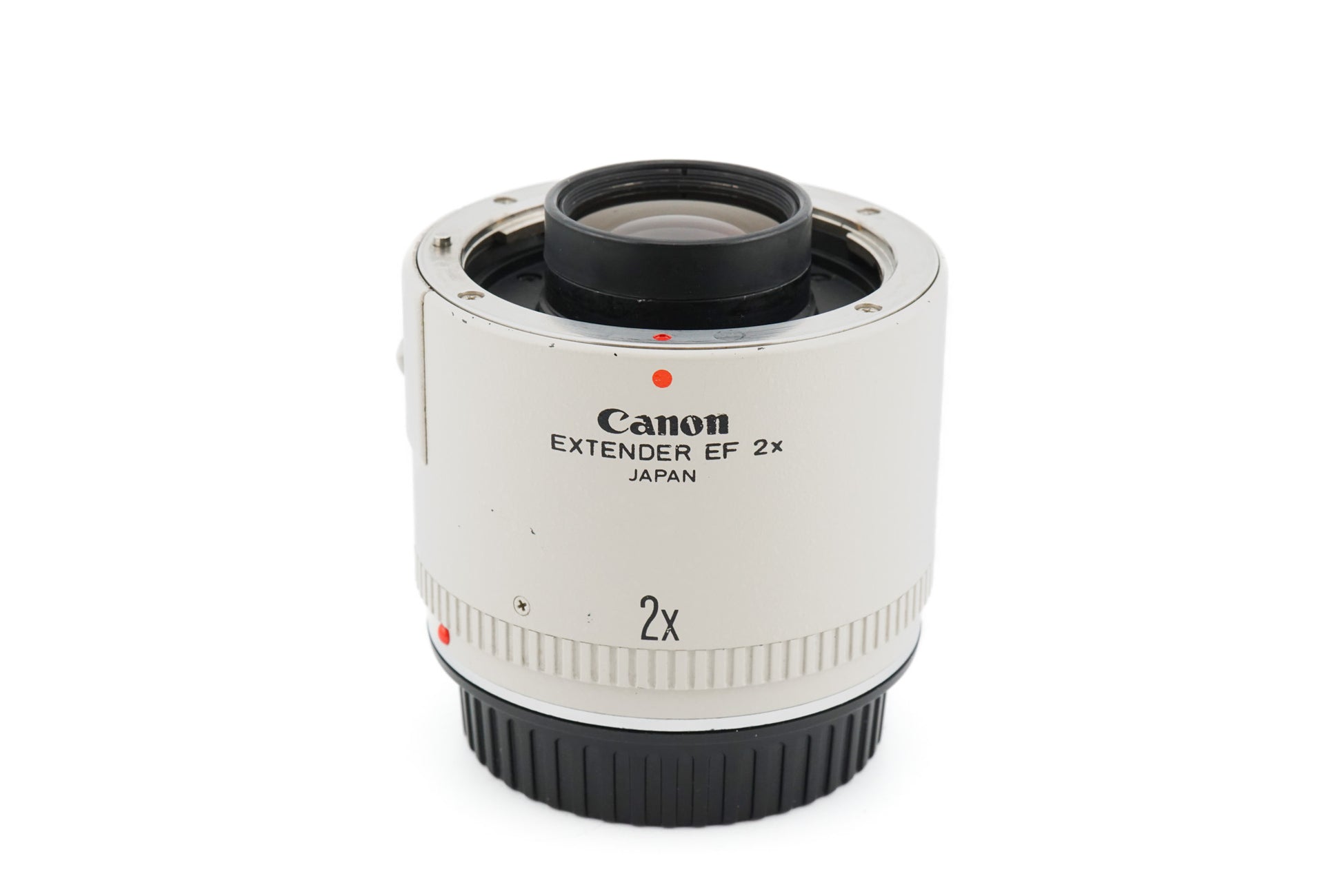 Teleconverter for EF-mount lenses and DSLR cameras introduced by Canon. It is intended for lenses with an aperture of f2.8 or faster. AF will not work on slower lenses. It doubles your focal length at the cost of 2 stops of light transmission. Metal/plastic body available in beige.