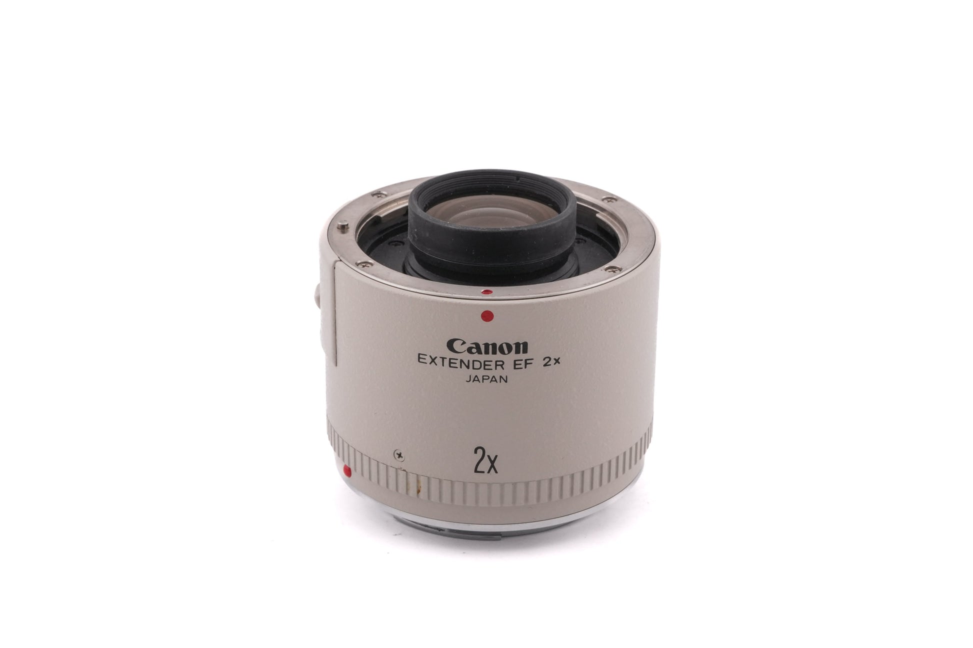 Teleconverter for EF-mount lenses and DSLR cameras introduced by Canon. It is intended for lenses with an aperture of f2.8 or faster. AF will not work on slower lenses. It doubles your focal length at the cost of 2 stops of light transmission. Metal/plastic body available in beige.