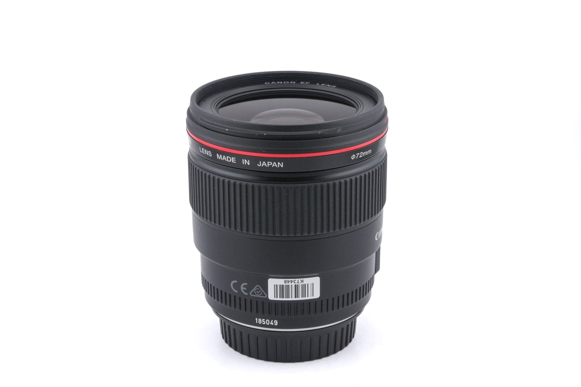 Autofocus wide-normal lens made for EF-mount SLRs by Canon. The lens is part of Canon's L line of professional lenses. It uses an ultrasonic focusing motor (USM) for fast, quiet autofocus. Metal/plastic body available in black.
