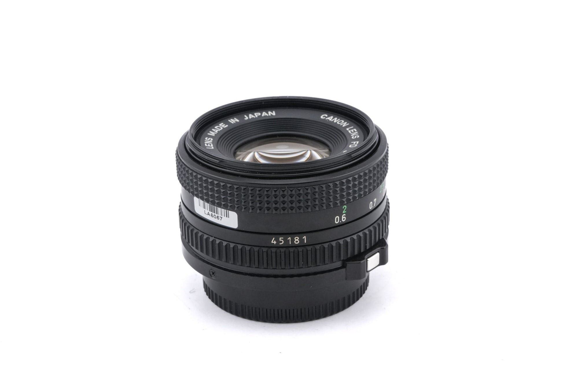 Manual focus normal focal length lens for FD-mount 35mm SLRs made by Canon in 1980. Uses Canon's newer FDn locking mechanism. Metal and plastic body available in black.