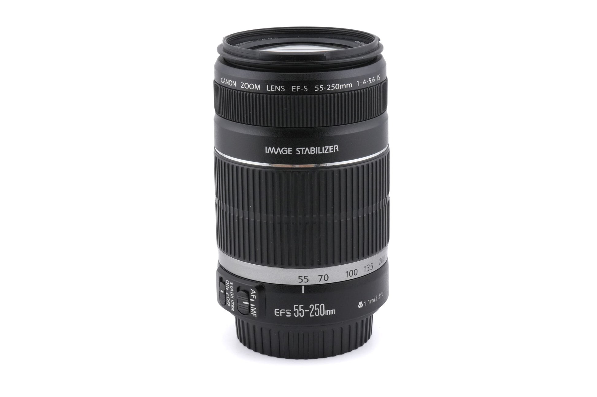 Autofocus telephoto zoom lens made for EF-S mount digital SLR cameras by Canon. It gives the equivalent field of view to an 82.5-375mm lens on full frame/35mm. It has a built-in image stabilizer (IS). Plastic body available in black.