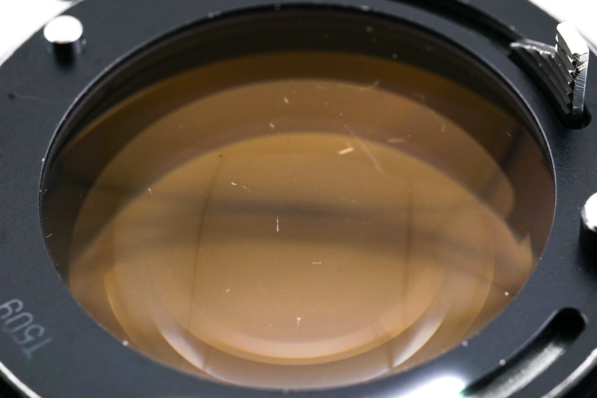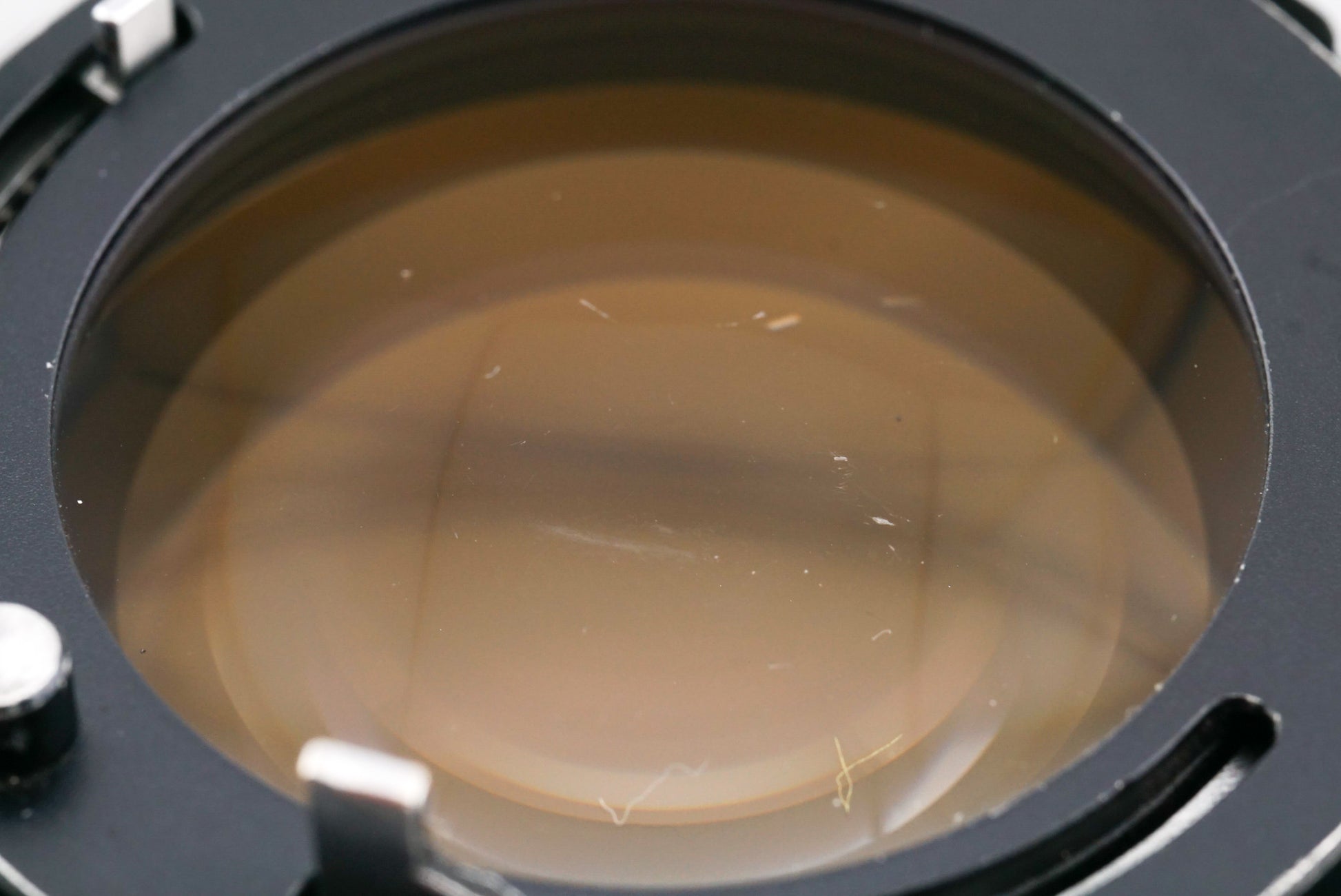 Hairline scratches on the front element with no effect on image quality. Rear element surface scratched up with multiple larger marks. No significant effect on image quality. Still excellent lens for use.