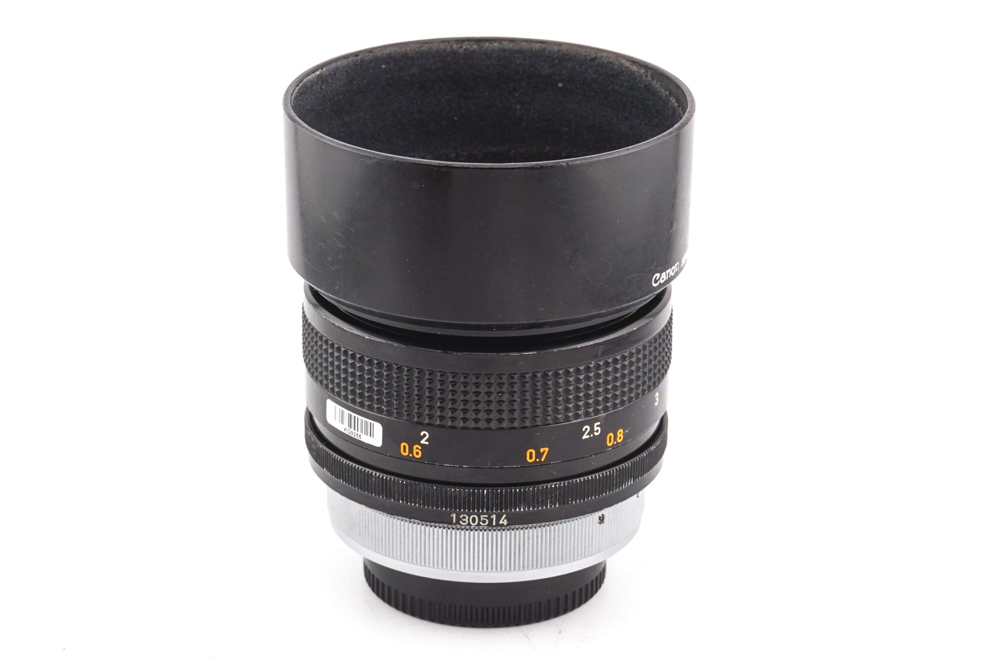Manual focus normal lens made for FD-mount 35mm SLR cameras introduced by Canon starting in 1975. The optical structure has one aspherical lens element and uses a floating element system. The original price (80000 Yen) is the equivalent of around 1025 Euros in 2025. Metal body available in black.