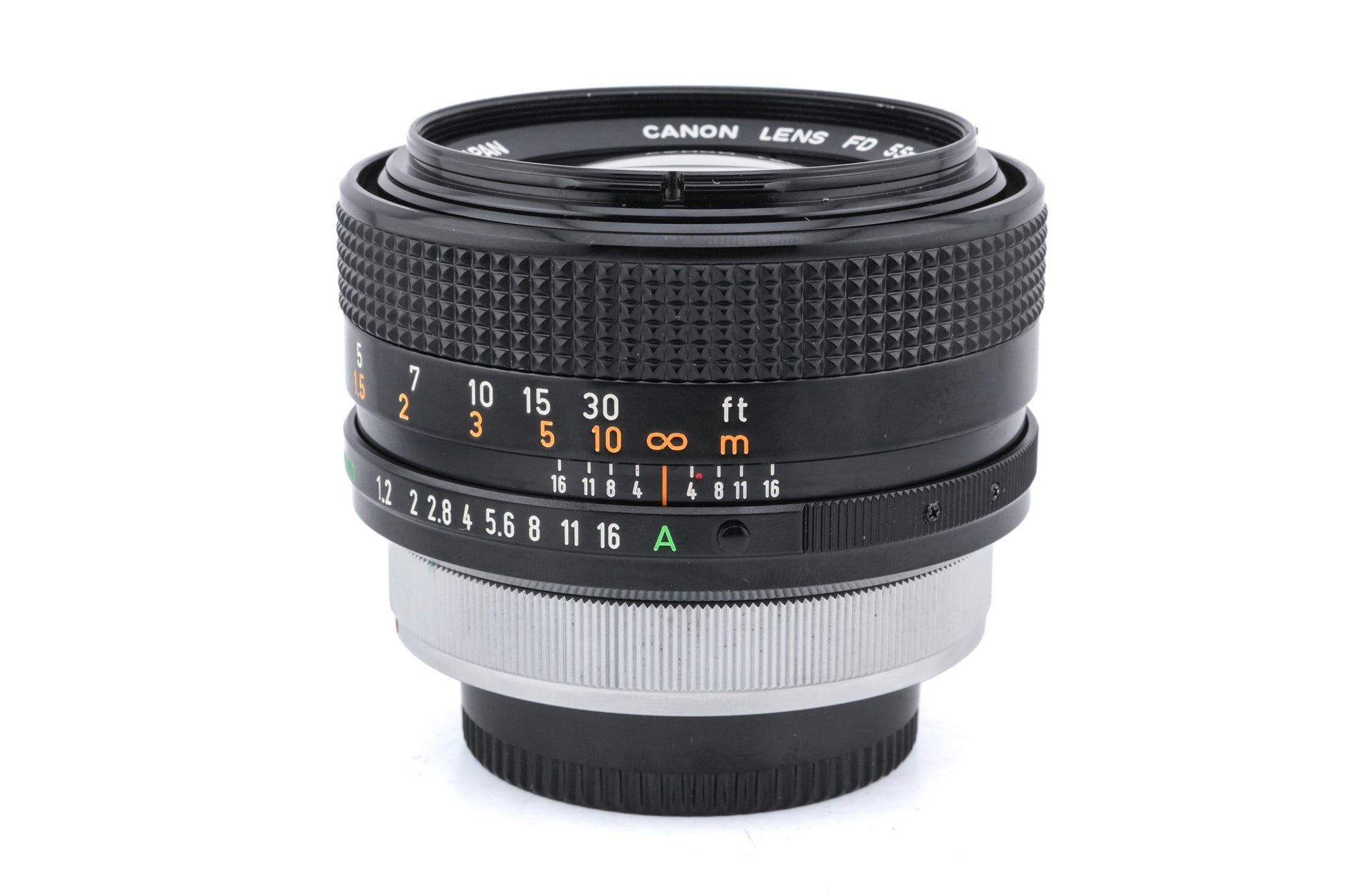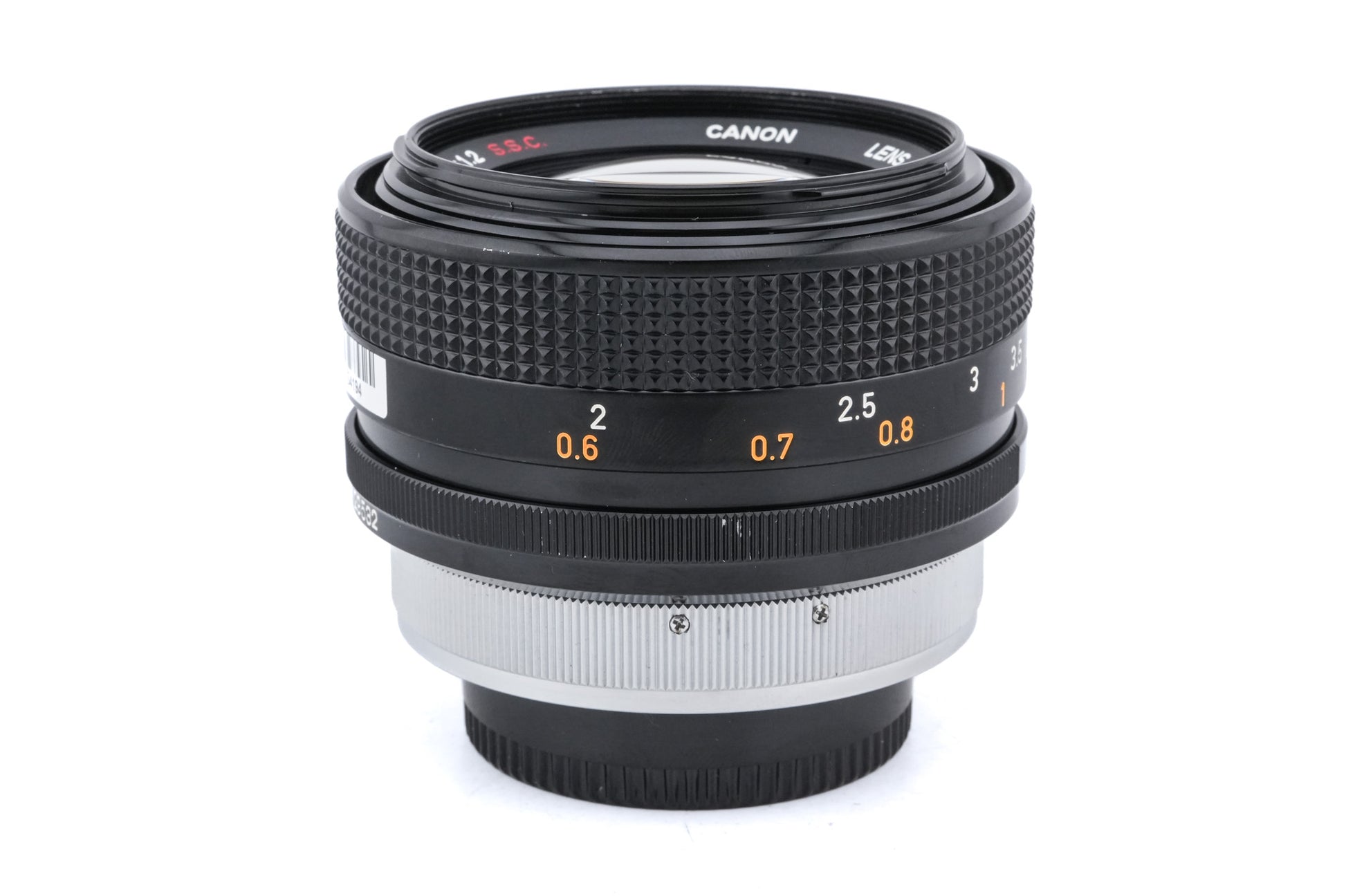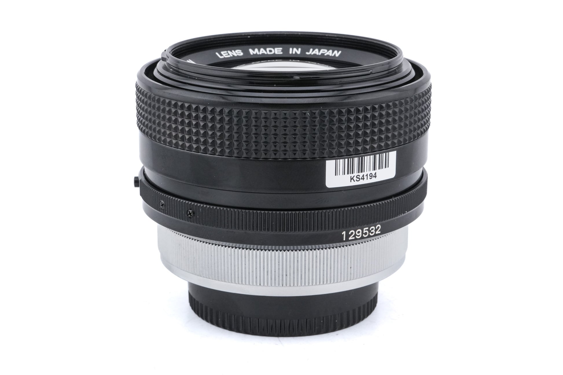 Manual focus normal lens for FD mount SLR cameras released by Canon in 1973. It uses the older breech-lock style mounting mechanism and has Canon's Super Spectra Coating. The original price (50000 Yen) is the equivalent of around 890 Euros in 2025. Metal body available in black.