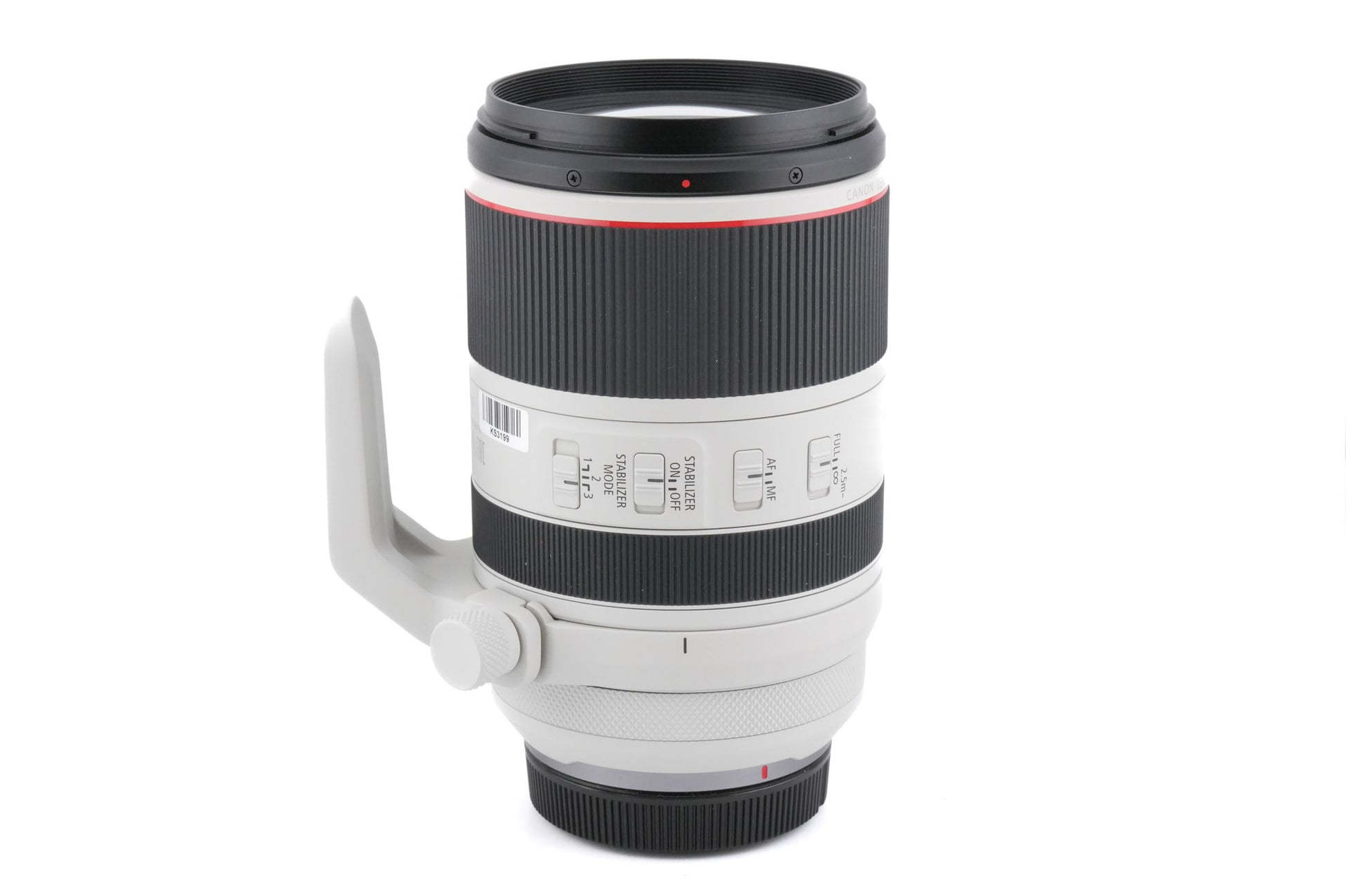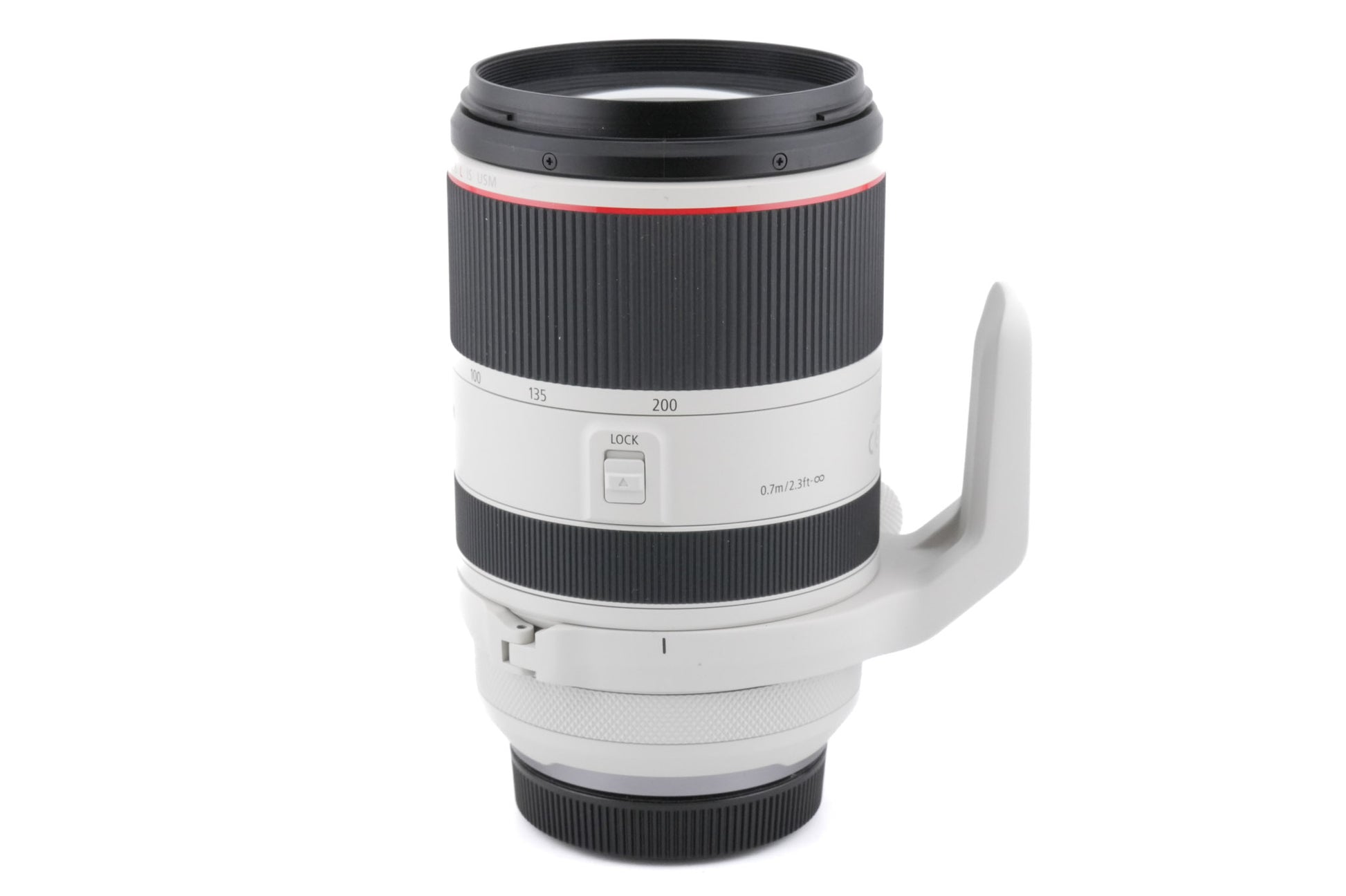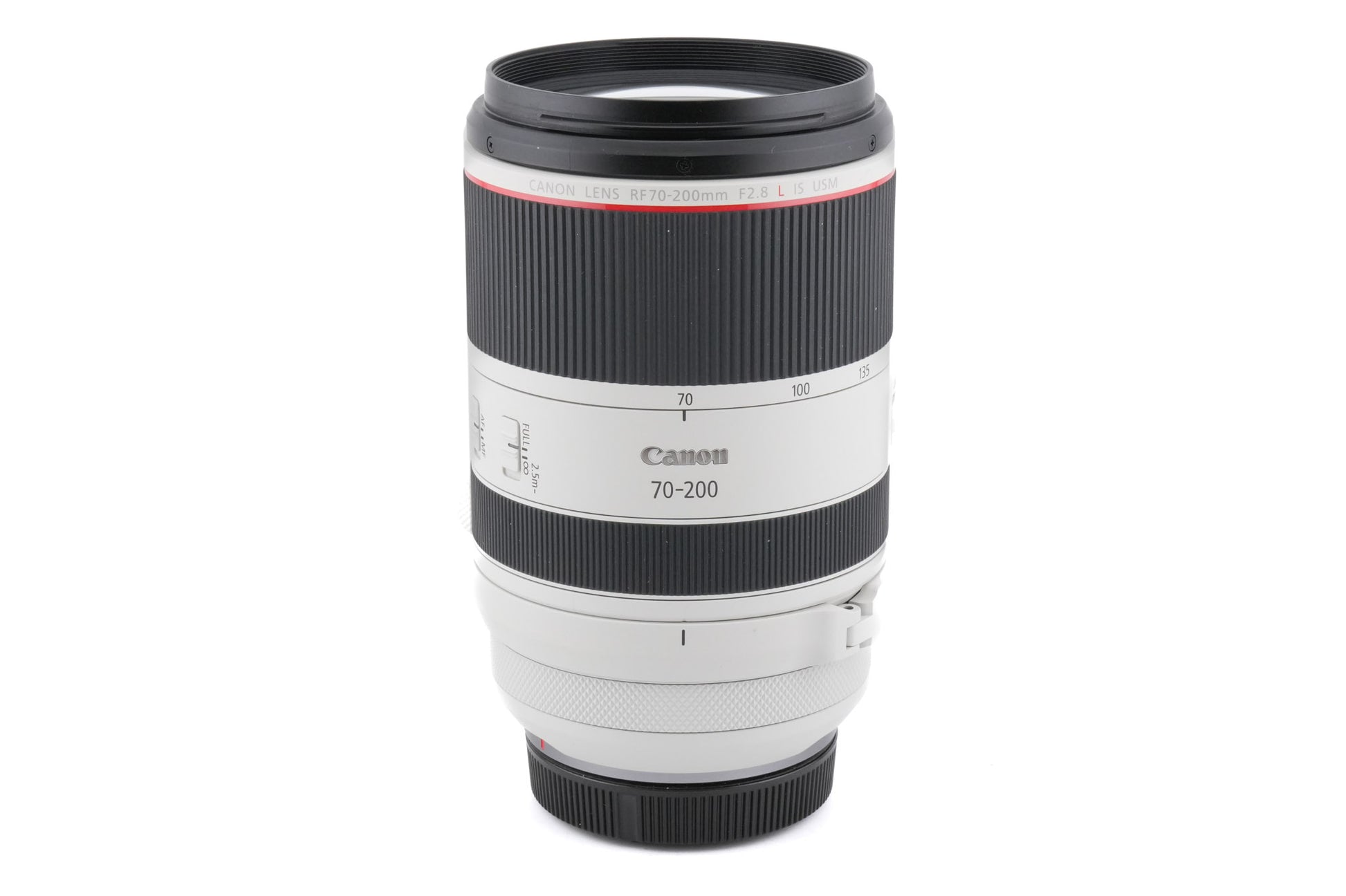 Autofocus telephoto zoom lens made for RF mount digital mirrorless cameras by Canon. It has built-in image stabilization (IS) and uses Canon's ultrasonic motor (USM) for autofocus. Plastic/metal body available in beige.