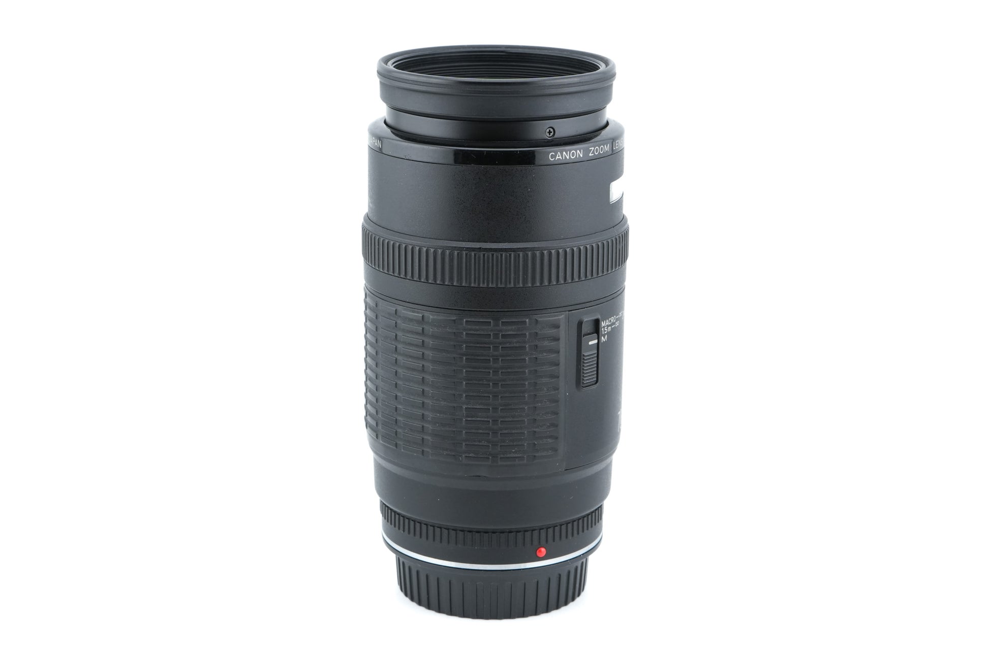 Autofocus telephoto zoom lens made for EF-mount SLR cameras by Canon starting in 1987. It was Canon's first autofocus telephoto zoom lens with a constant aperture of f4 throughout the zoom range. It uses a one-touch, push/pull zoom mechanism. Plastic and metal body available in black.