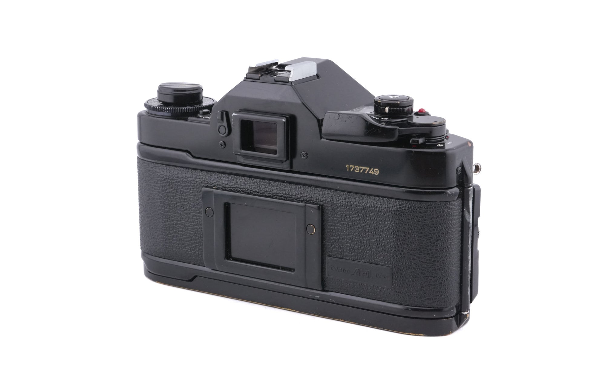 Manual focus 35mm FD-mount SLR camera released by Canon in 1978. The A-1 features several different auto exposure modes such as shutter priority, aperture priority, and programmed fully-automatic mode. It was the first SLR camera to feature fully programmed auto exposure and the first to have the four standard exposure modes seen in modern digital cameras (PSAM). Metal body available in black.