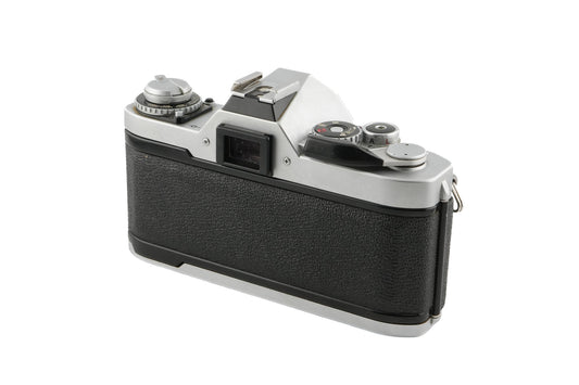 Manual focus FD mount 35mm SLR released by Canon in 1979. This camera was only sold in foreign markets and offers aperture-priority auto exposure only. Plastic body available in black & silver.