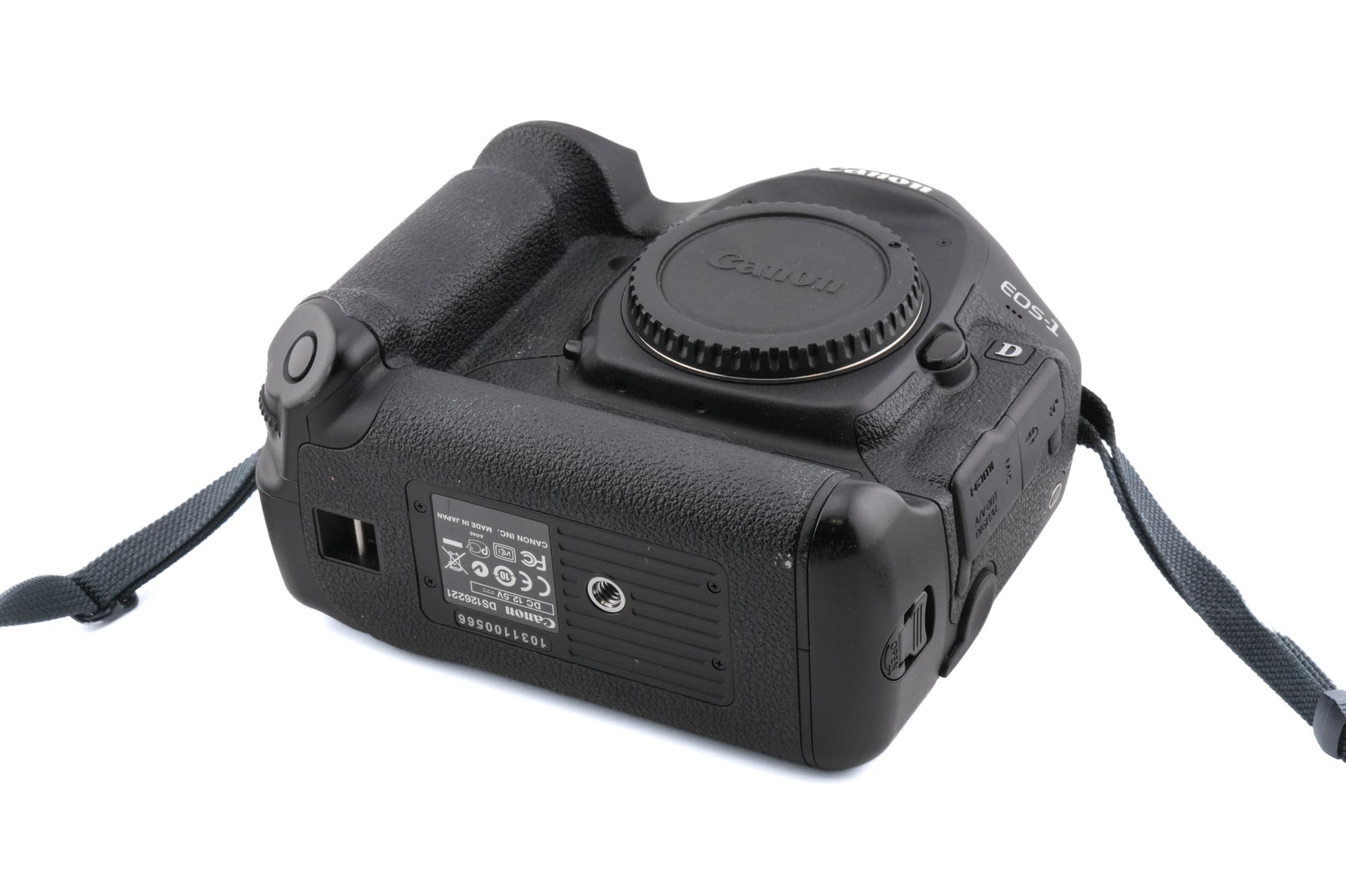 Autodfocs EF-mount digital SLR released by Canon in 2009. It was marketed for professional photographers. It can record 1080p video and is weather-sealed. Magnesium alloy body available in black.