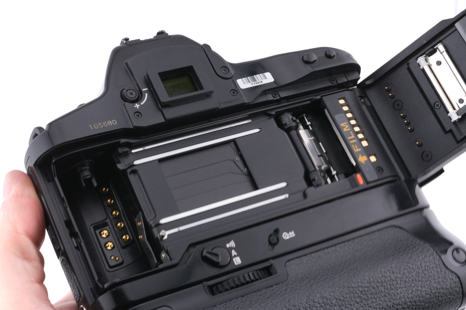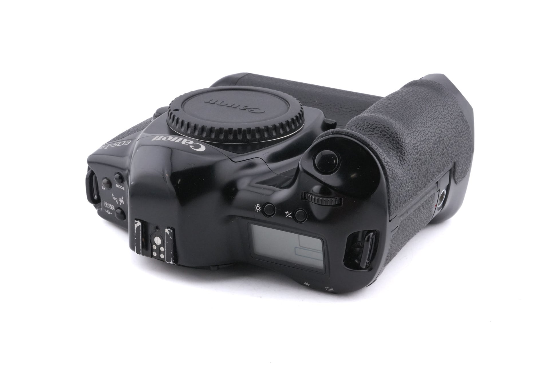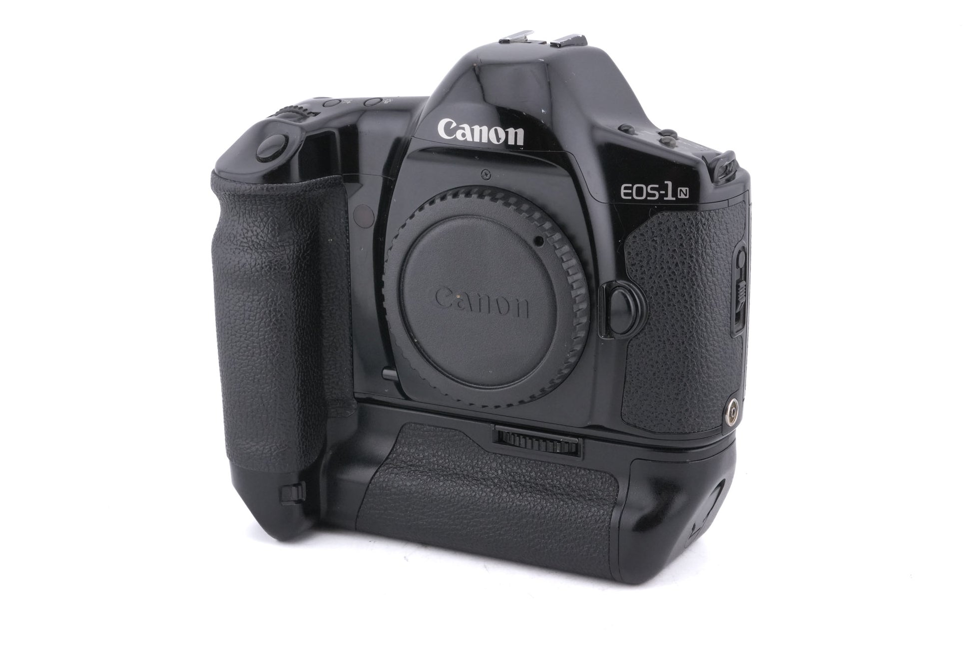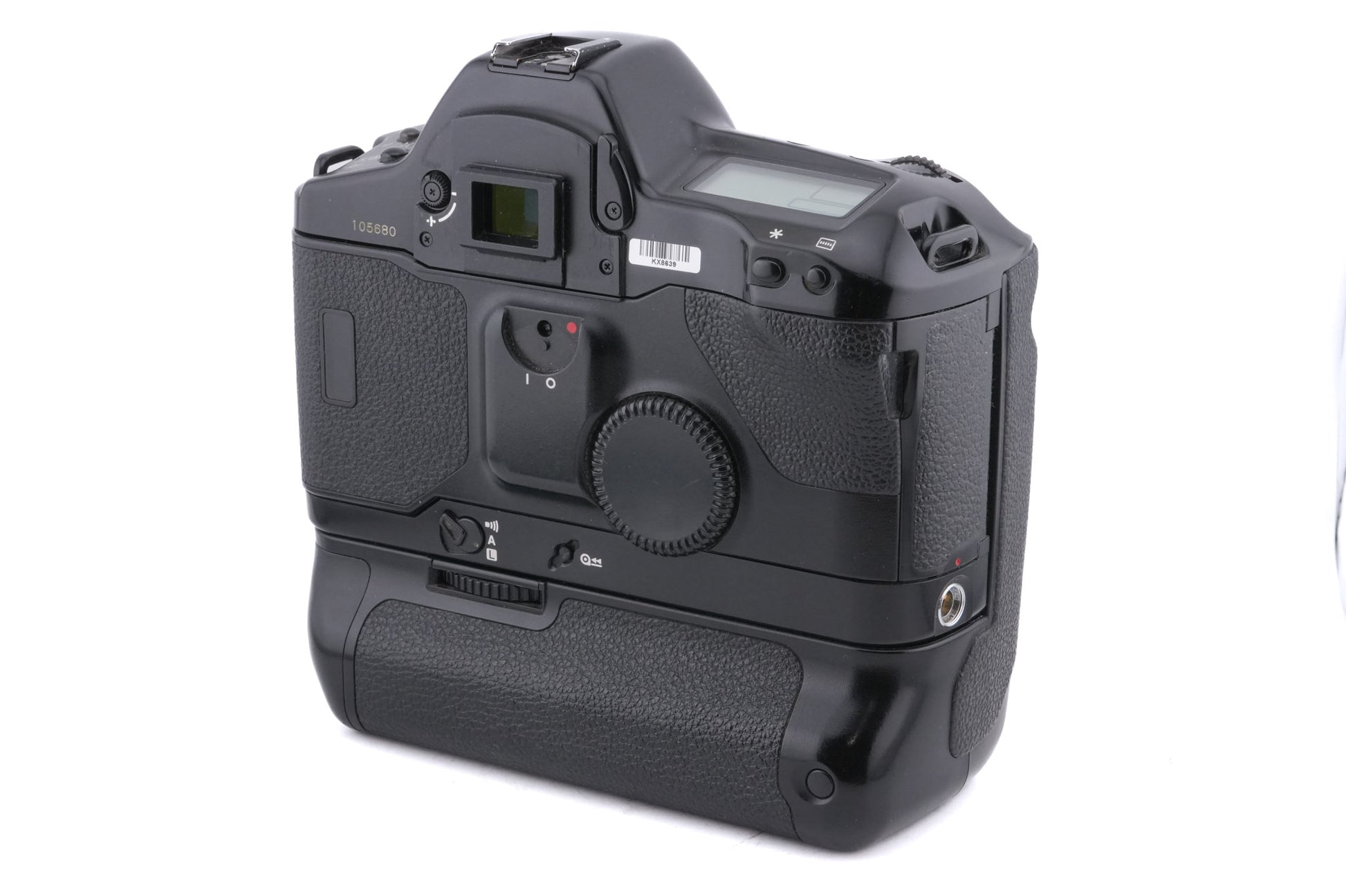 Autofocus EF-mount 35mm SLR released by Canon in 1994. This replacement for the original EOS-1 has 5 focus points and a new cross-type AF sensor that improves speed and accuracy. The original price (215,000 Yen) is equivalent to ~1625 Euro in 2023. The standard EOS-1N comes with a GR-E1 battery grip. Plastic body (on a magnesium frame) available in black.