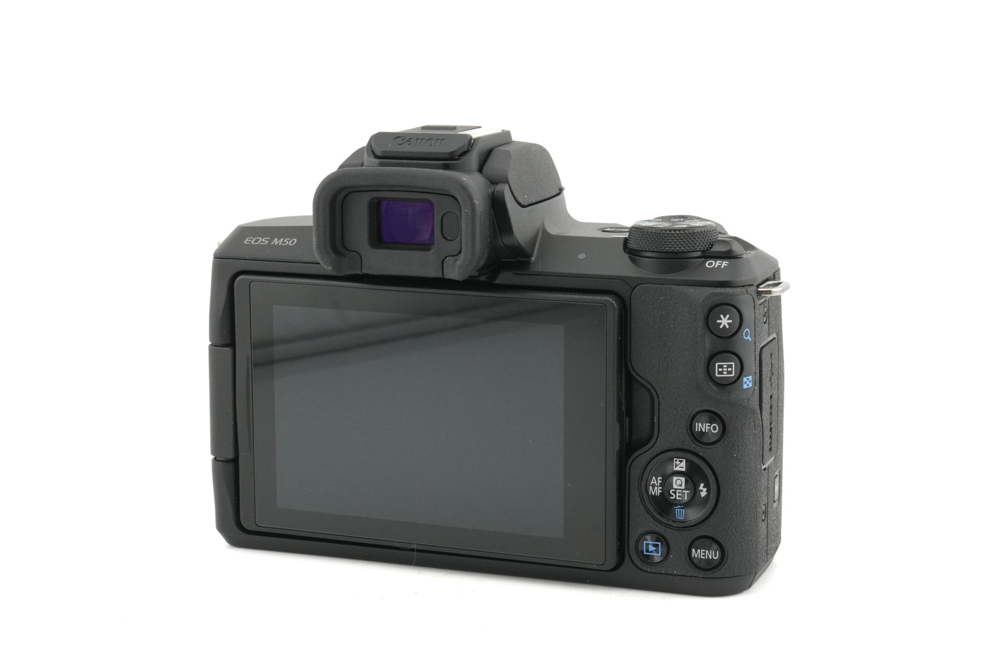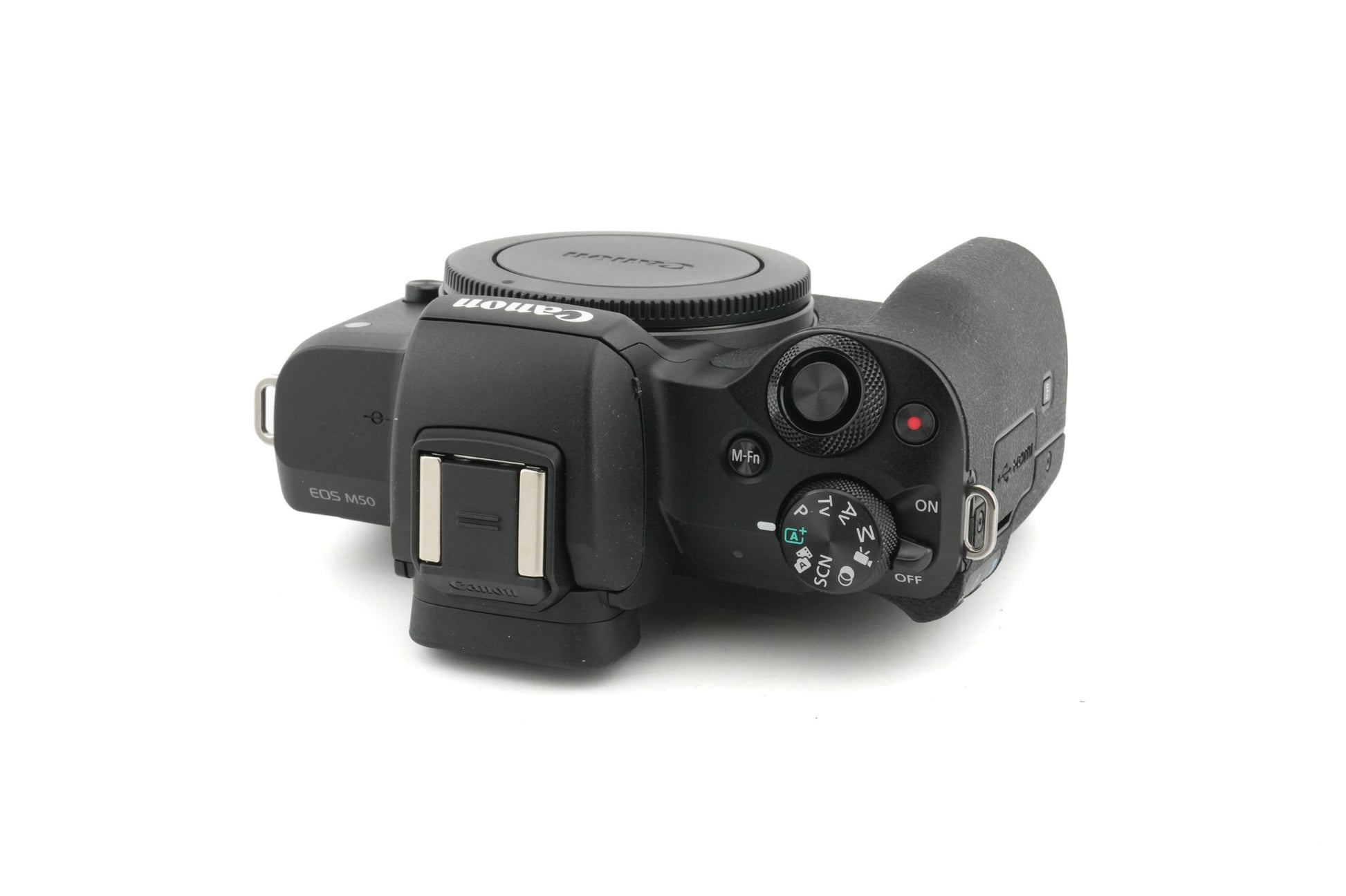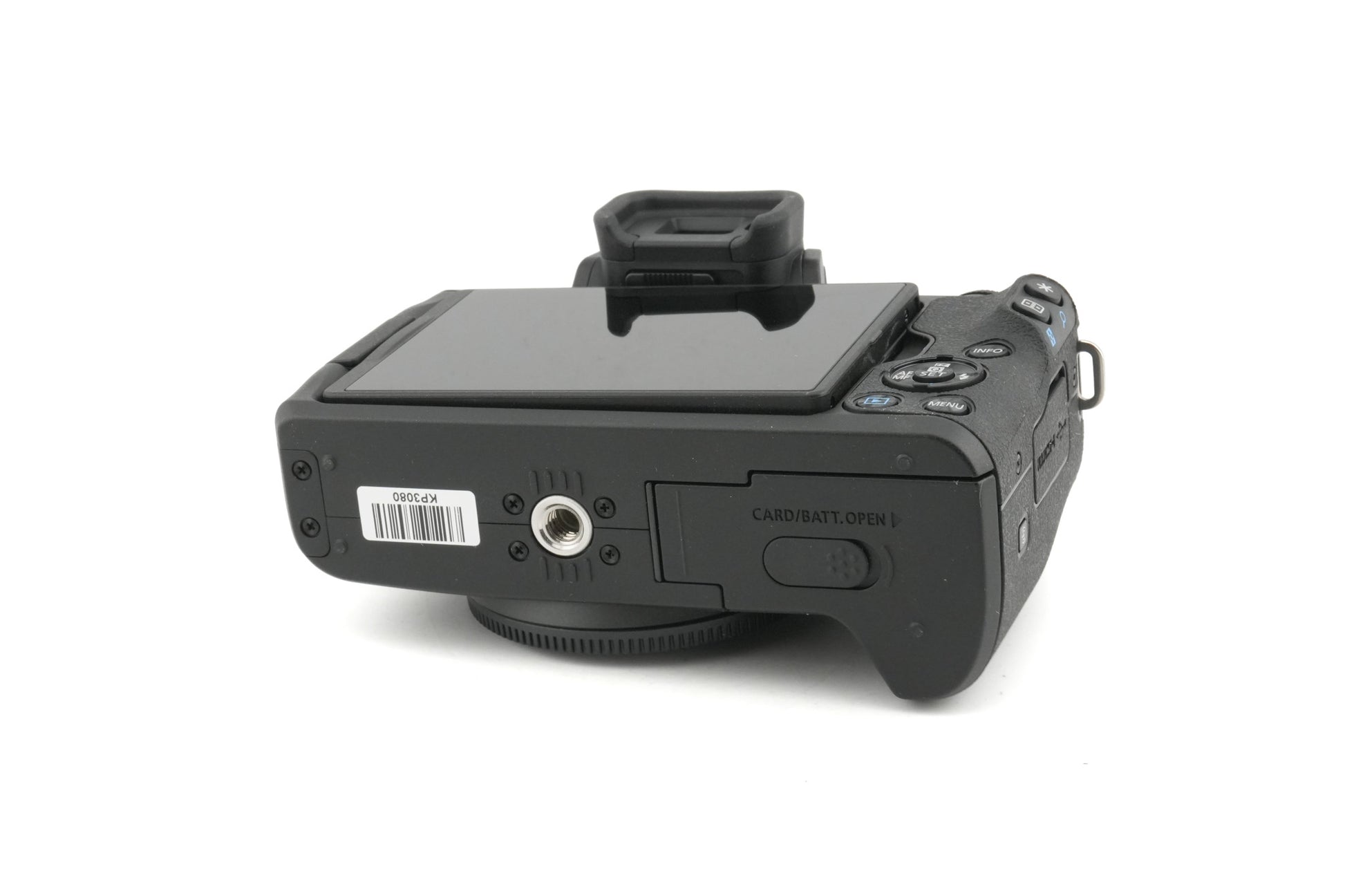 Autofocus EF-M-mount digital mirrorless camera released by Canon in 2018. It has a fully articulating rear touch screen and an OLED electronic viewfinder. It can record 4K video. Plastic body available in black & white.