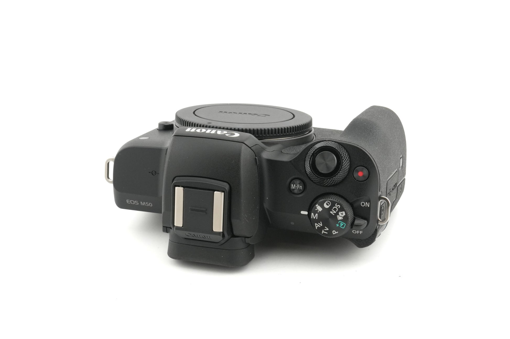 Autofocus EF-M-mount digital mirrorless camera released by Canon in 2018. It has a fully articulating rear touch screen and an OLED electronic viewfinder. It can record 4K video. Plastic body available in black & white.