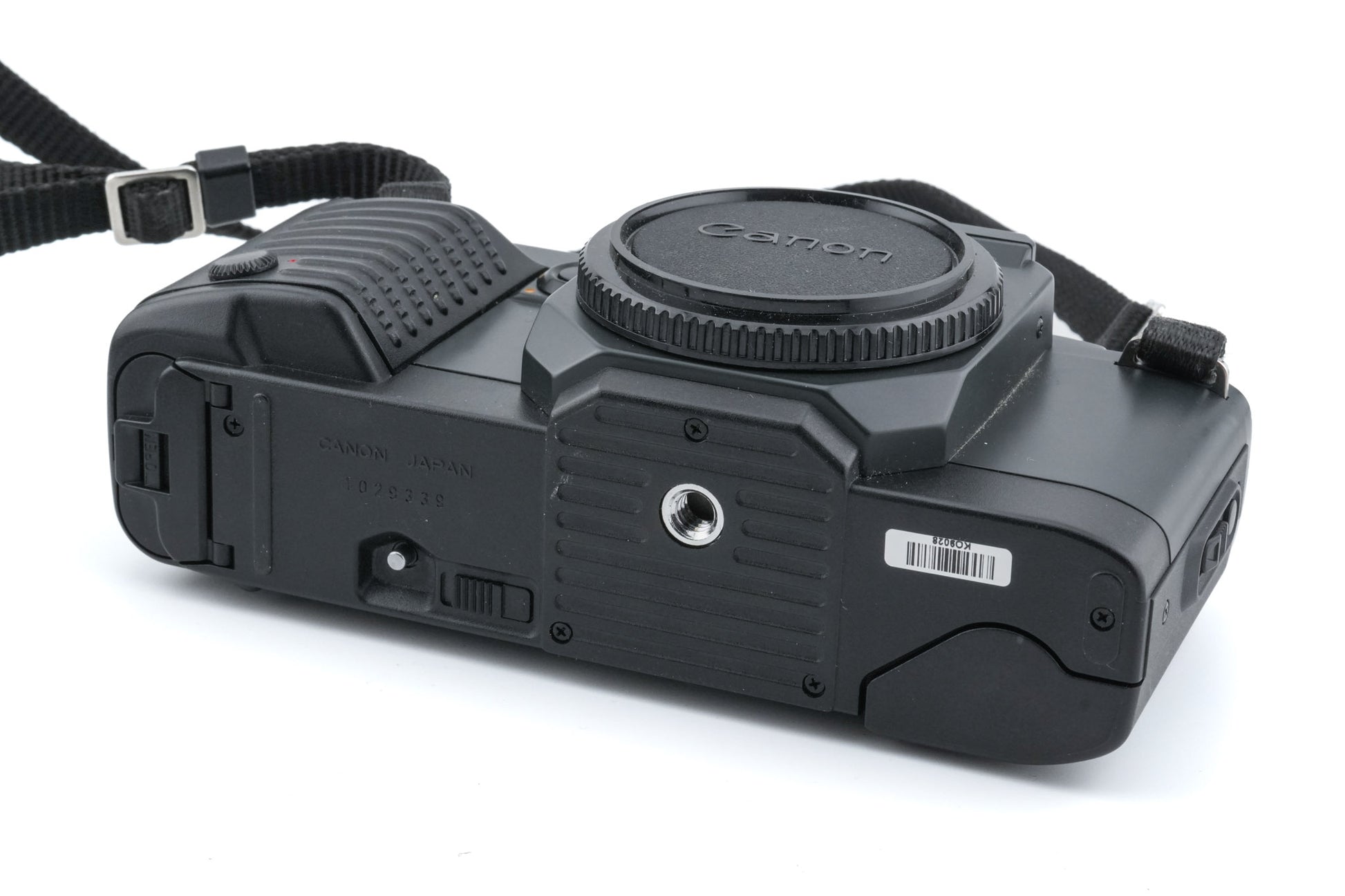 Manual focus FD-mount 35mm SLR released by Canon in 1984. The original cost (69,000 Yen) is equivalent to ~560 Euros in 2024. Plastic body available in dark grey and black.