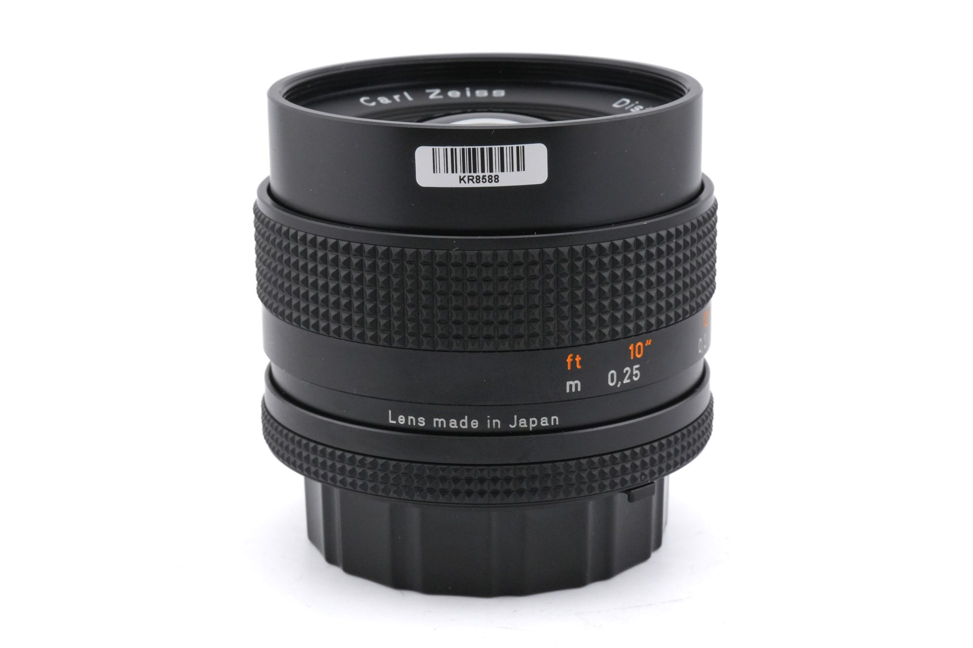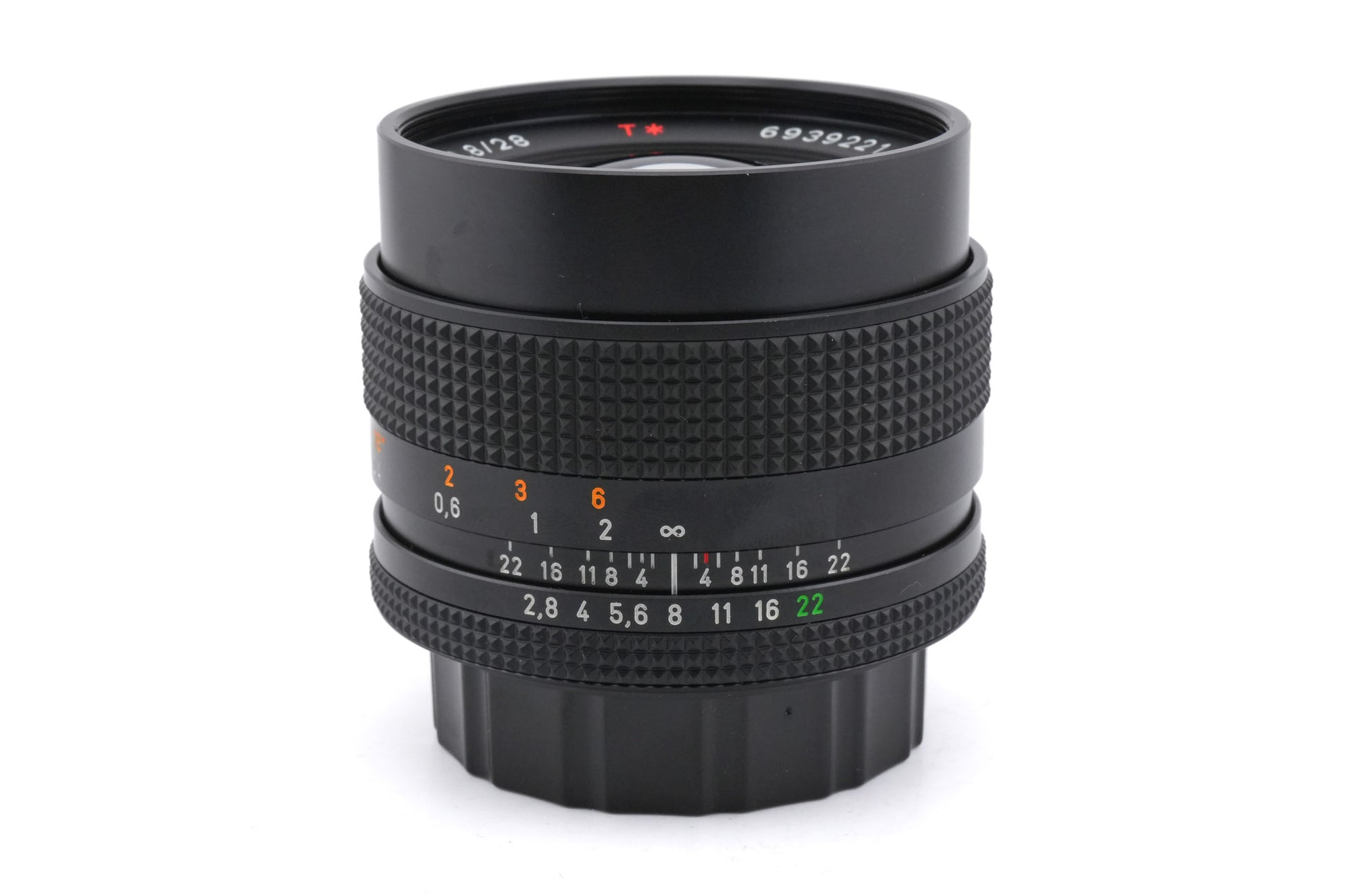 Manual focus wide-angle lens made for Contax/Yashica mount 35mm SLR cameras introduced by Carl Zeiss in 1978. This lens is of the newer MM variant that supports shutter priority and program modes. Metal body available in black.