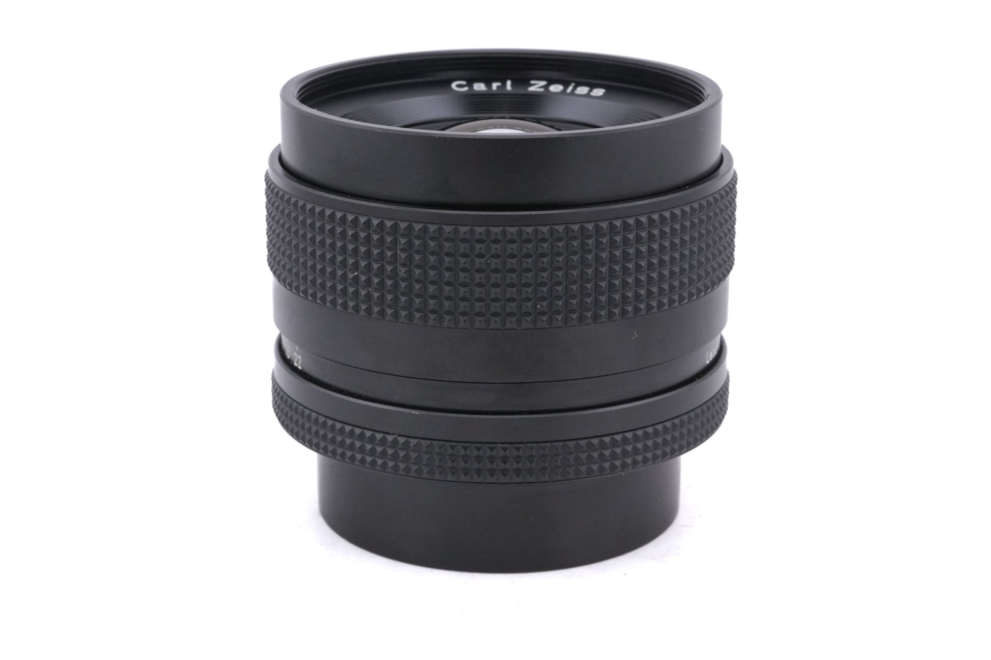 Manual focus wide normal lens made for Contax/Yashica mount 35mm SLR cameras introduced by Carl Zeiss in 1974. This lens is of the newer MM variant that supports shutter priority and program modes. Metal body available in black.