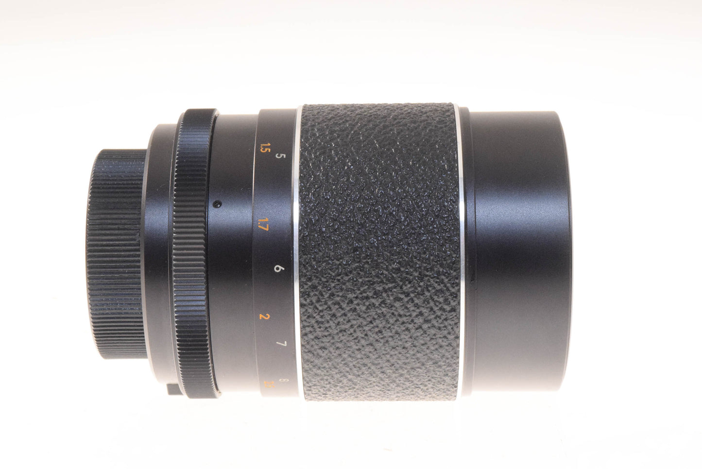 Manual focus telephoto lens made for M42 thread mount SLR cameras by Chinon. Metal body available in black.