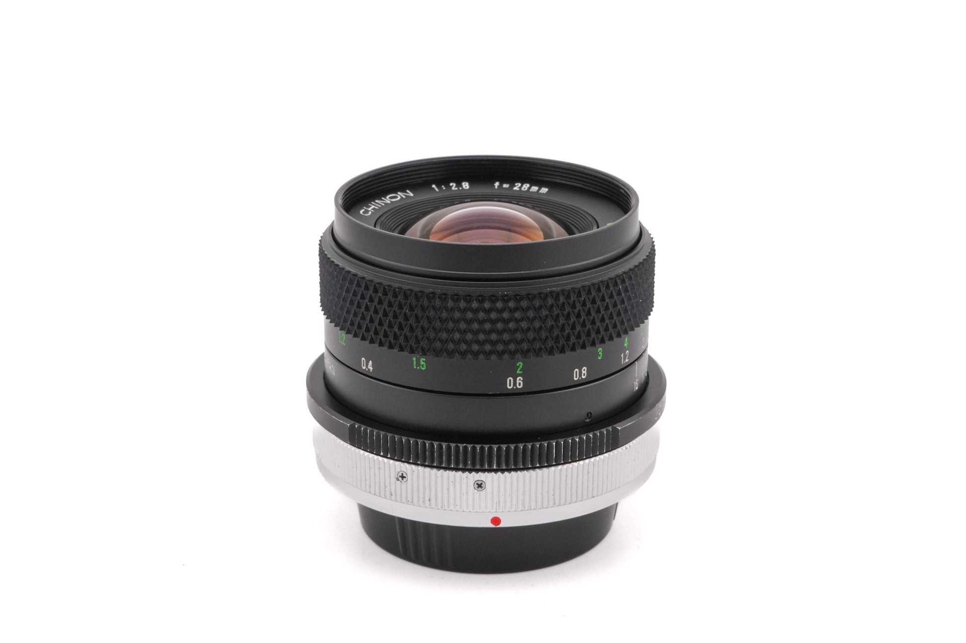Manual focus wide angle lens made for FD-mount 35mm SLR cameras introduced by Chinon. Metal body available in black.
