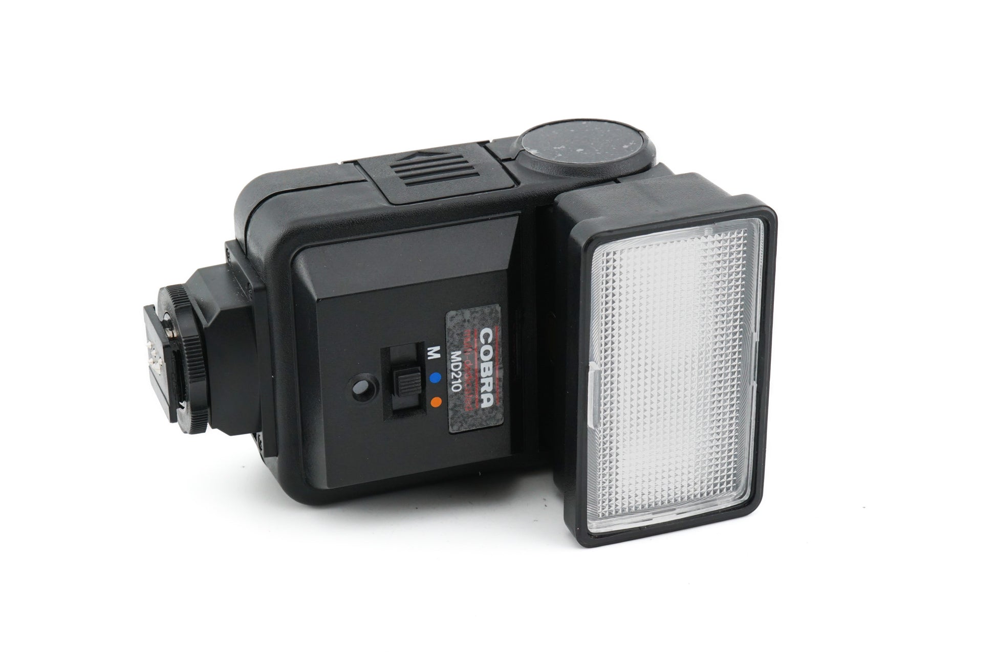 External flash made by Cobra for Nikon F mount DSLR cameras.