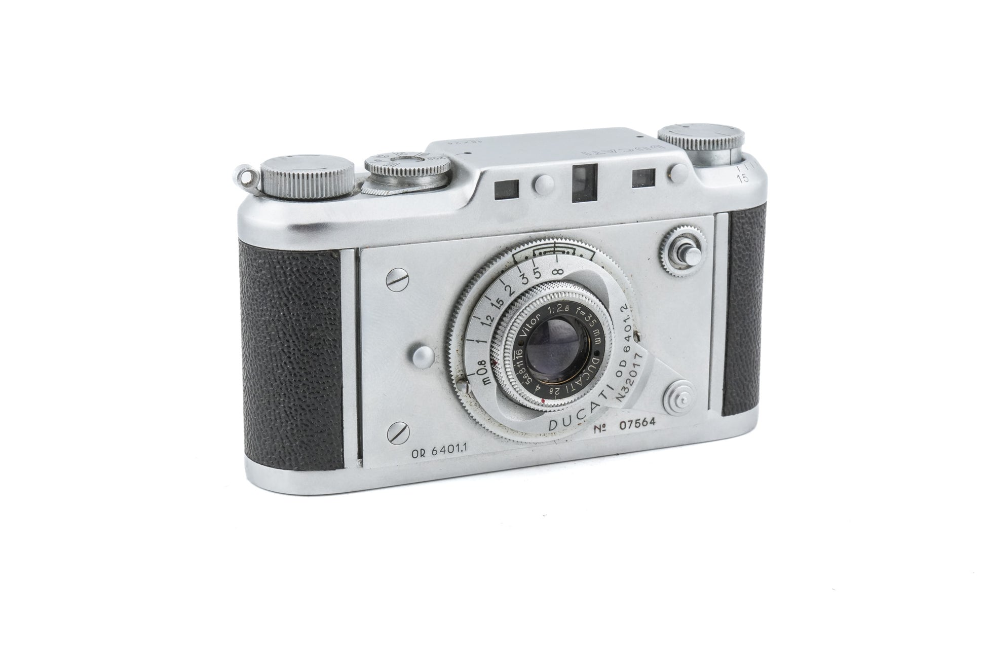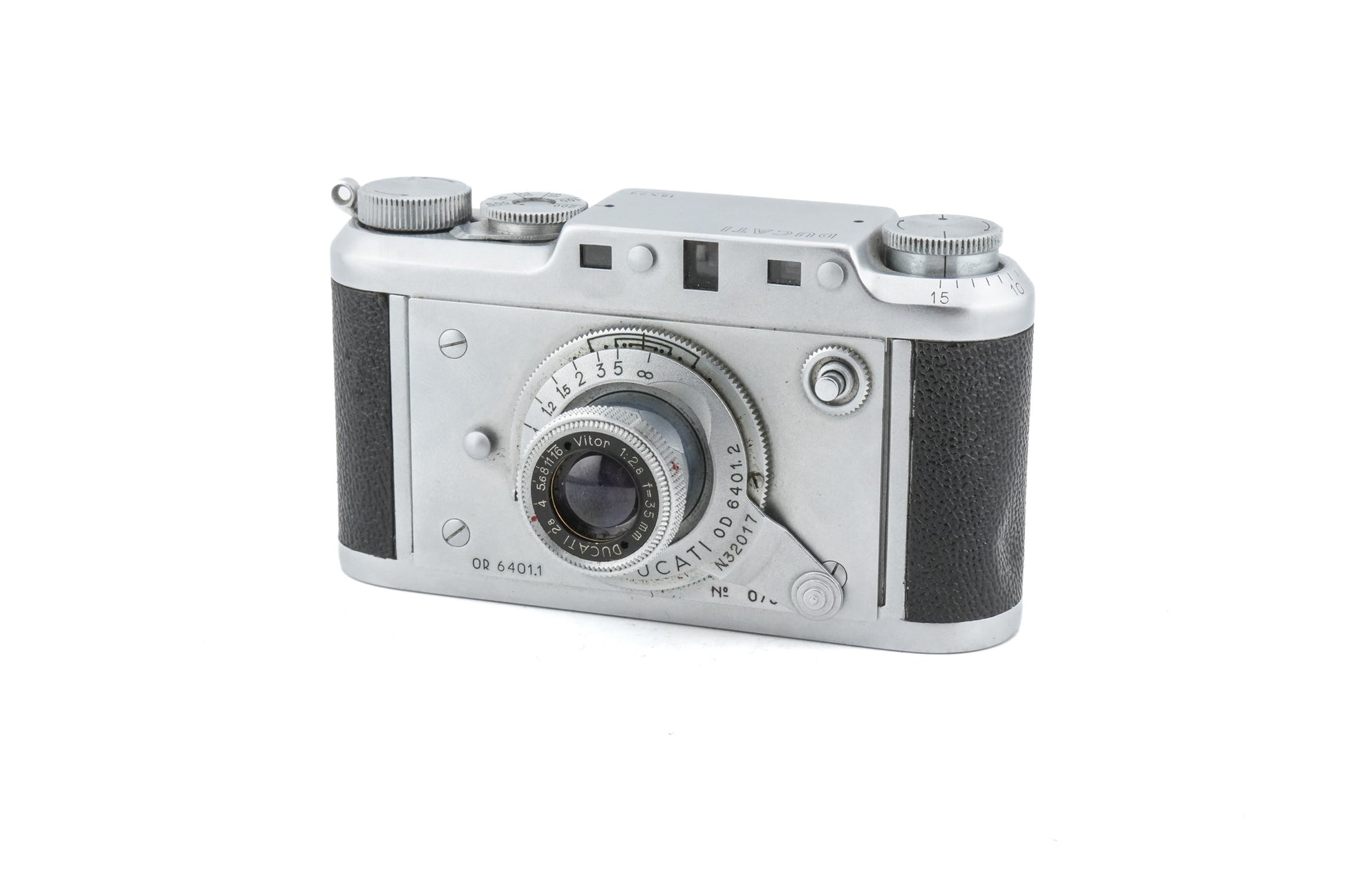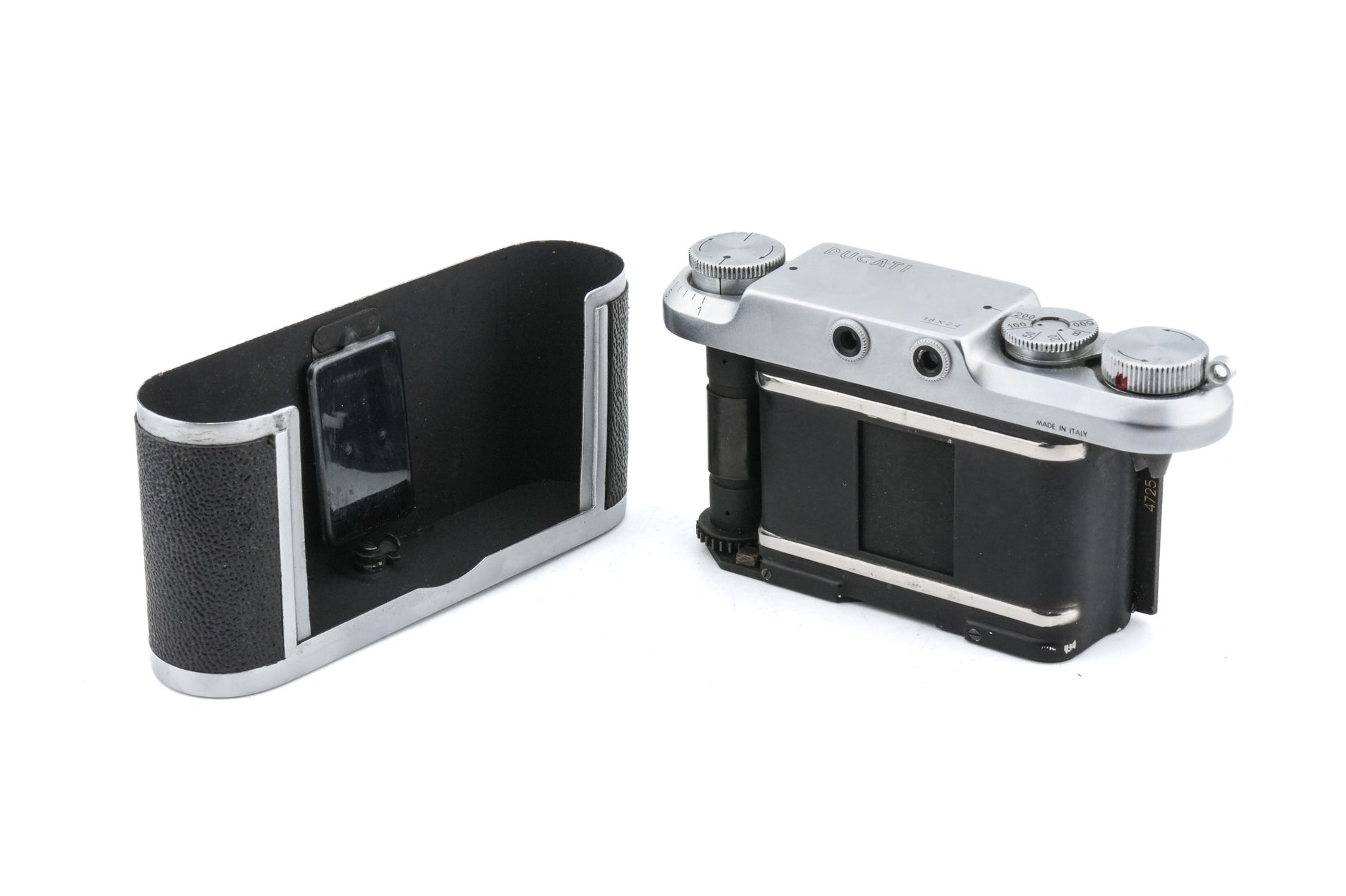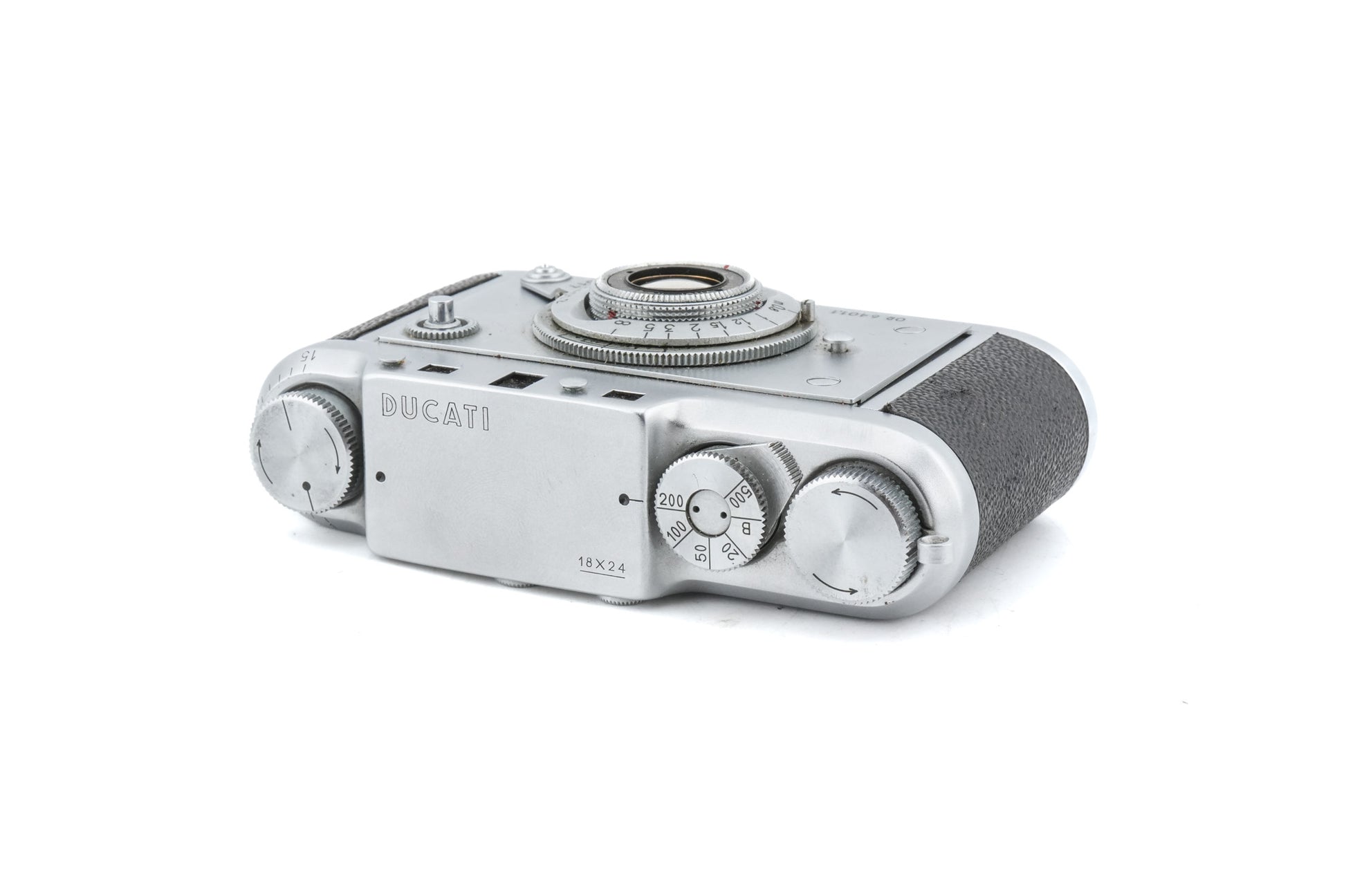 Manual focus half frame 35mm rangefinder camera released by Ducati. Metal body available in silver.