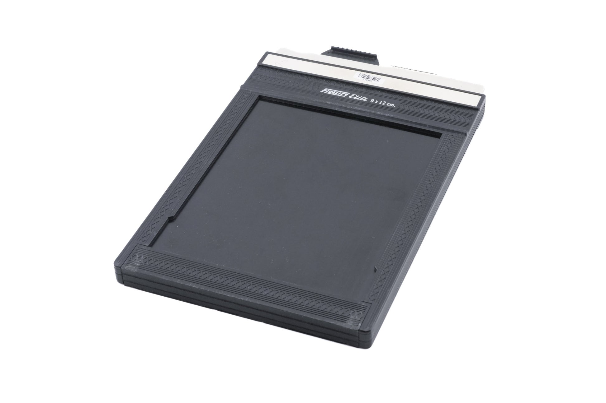 9x12cm sheet film holder made by Fidelity. Each holder can hold two sheets of film, one on each side. Made in the USA. Plastic body available in black.