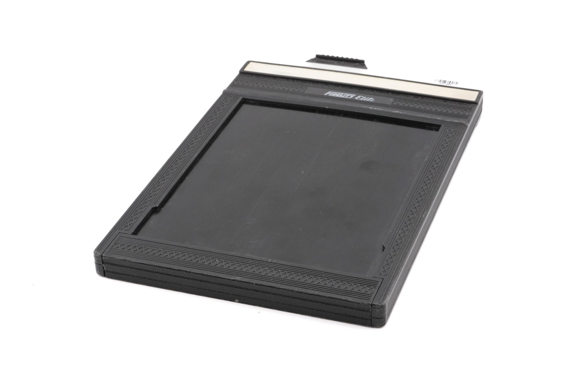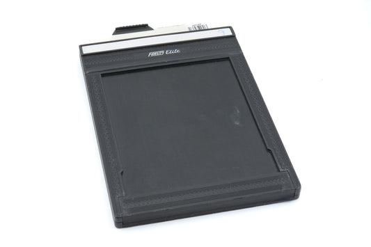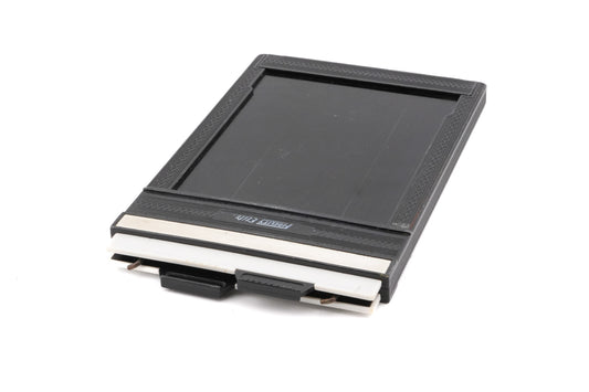 4x5" sheet film holder made by Fidelity. Each holder can hold two sheets of film, one on each side. Made in the USA. Plastic body available in black.