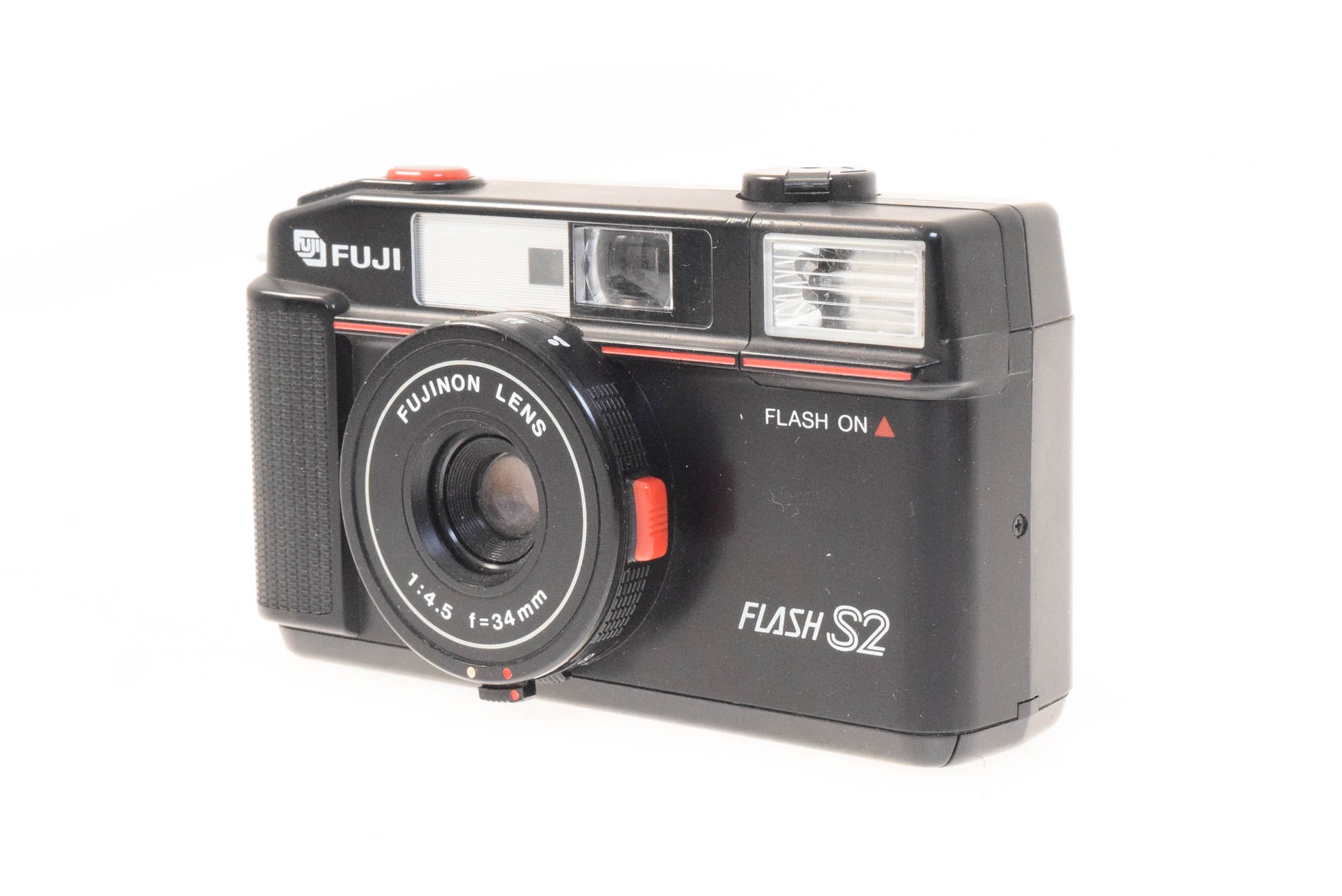 Fuji Flash S2 35mm symbol focus camera released by Fujifilm in 1972. Plastic body available in black.